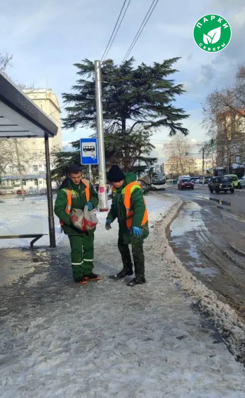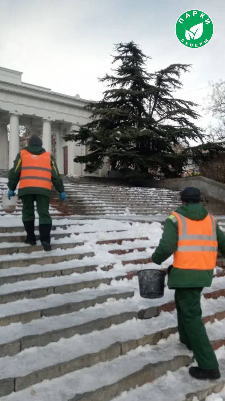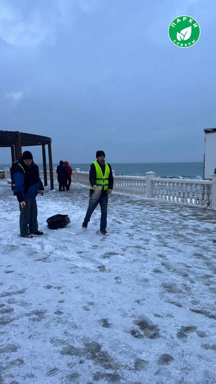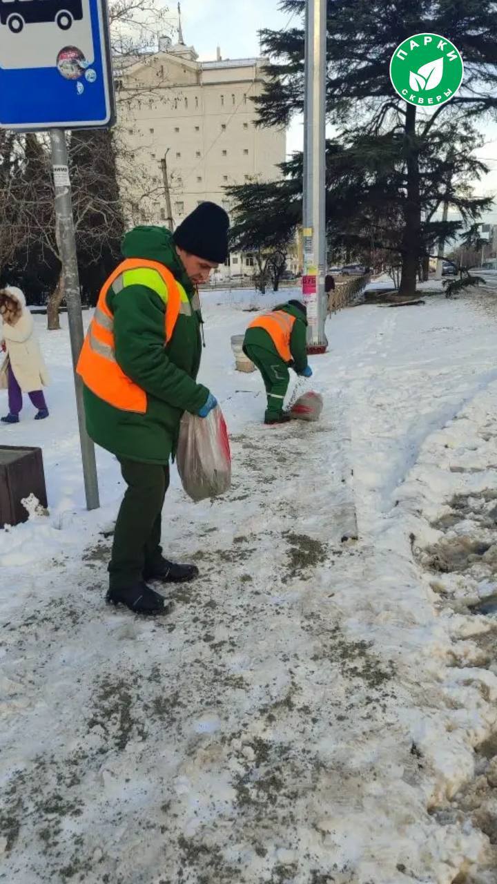 Для безопасных прогулок: в Севастополе продолжают убирать снег и наледь