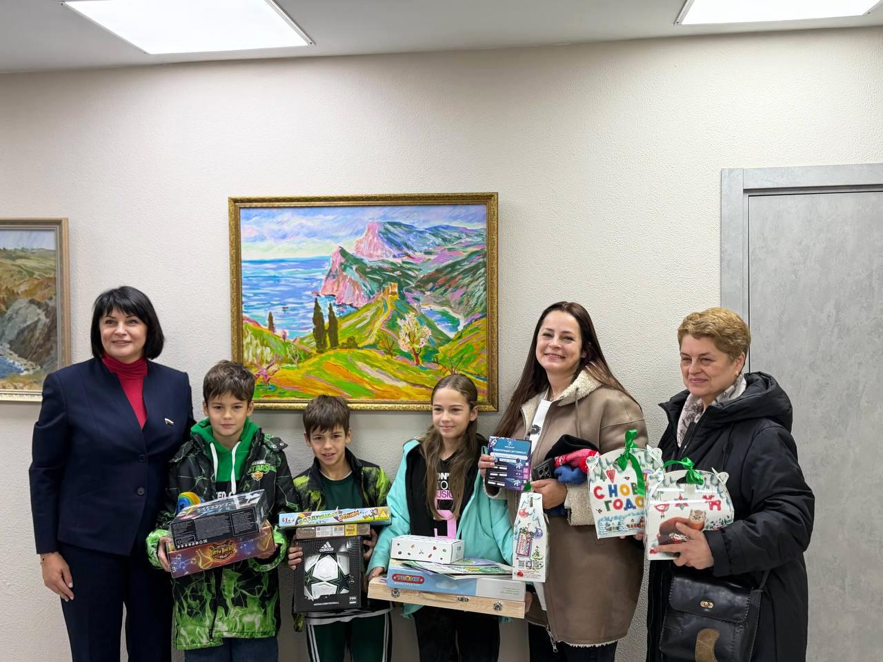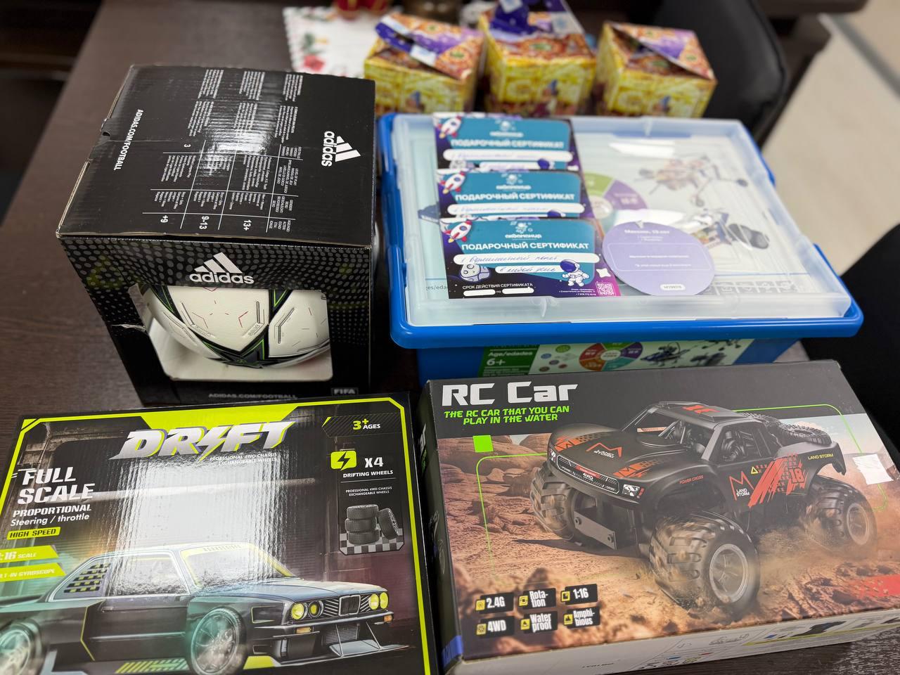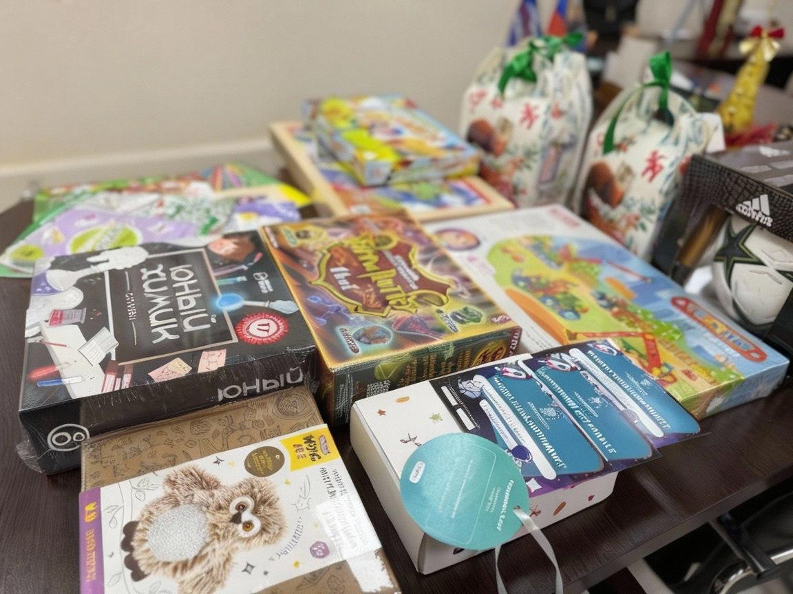 Второй шар: 8-летний Владимир и его брат с сестрой — двойняшки Степан и Василина — также мечтали о сюрпризах. Ребята очень разносторонние: любят футбол, чтение и научные опыты. Передала им наборы для творчества и экспериментов, настольные игры, футбольный мяч и, конечно, сладкие подарки вместе с сертификатами в активити-парк «Аквамания».