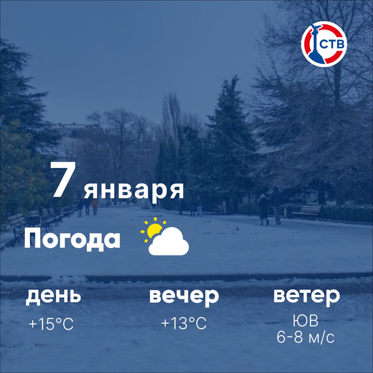 Доброе утро, севастопольцы! В городе ожидается переменная облачность. Утром возможен небольшой дождь. Днём воздух прогреется до +15°C, к вечеру станет прохладнее — около +13°C. Температура воды у берега — примерно +10°C. Отличный день для неспешных прогулок, тёплых встреч и продолжения праздничного отдыха. Пусть этот день подарит вам уют и хорошее настроение.