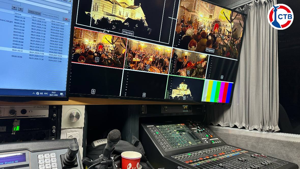 2,5 часа прямого эфира, подготовленного в рекордное время с учетом условий безопасности, обеспечивали 18 сотрудников телеканала: операторы, инженеры, монтажеры и корреспонденты. Ход богослужения для телезрителей СТВ на месте события комментировал иеромонах Анастасий.