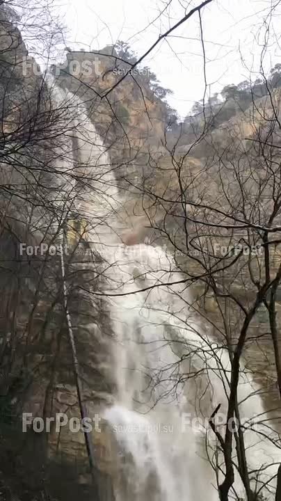 Учан-Су сегодня. По словам гида, таким полноводным водопад не был последние лет десять
