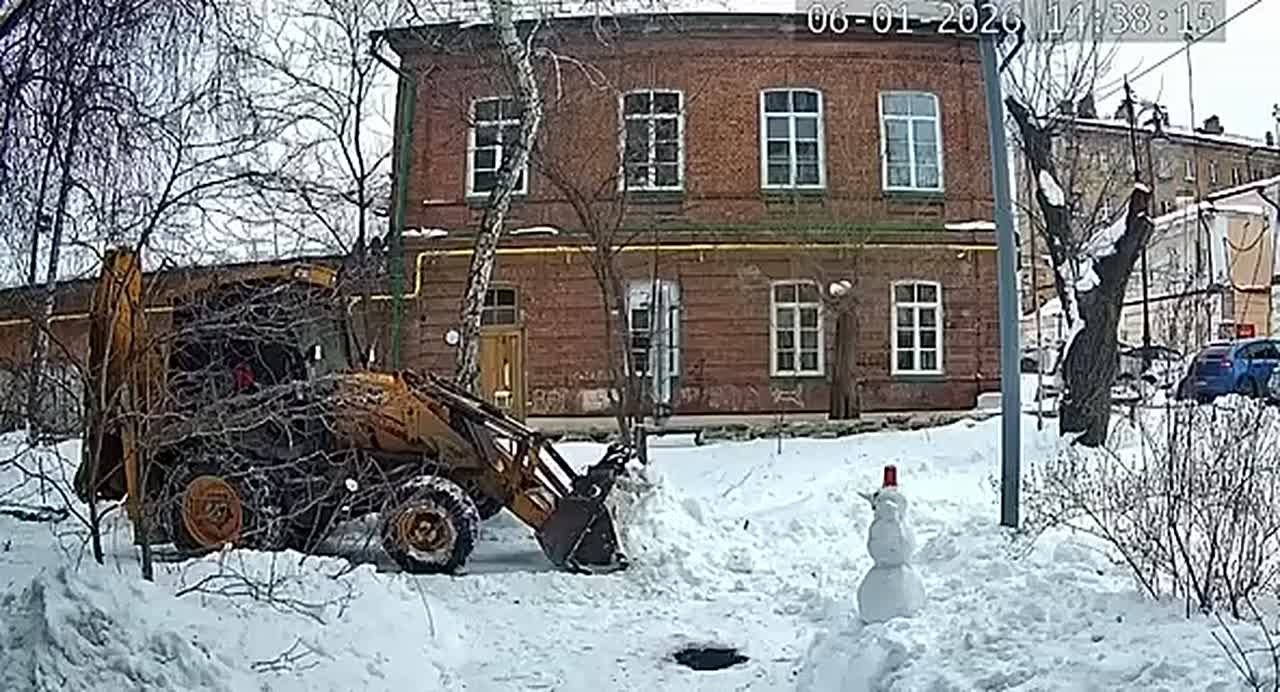 В Оренбурге уборщик снега на спецтехнике заметил во дворе слепленного детьми снеговика. Он остановился, аккуратно перенес фигуру в безопасное место и только потом продолжил работу. Этот душевный момент попал на камеру наблюдения.