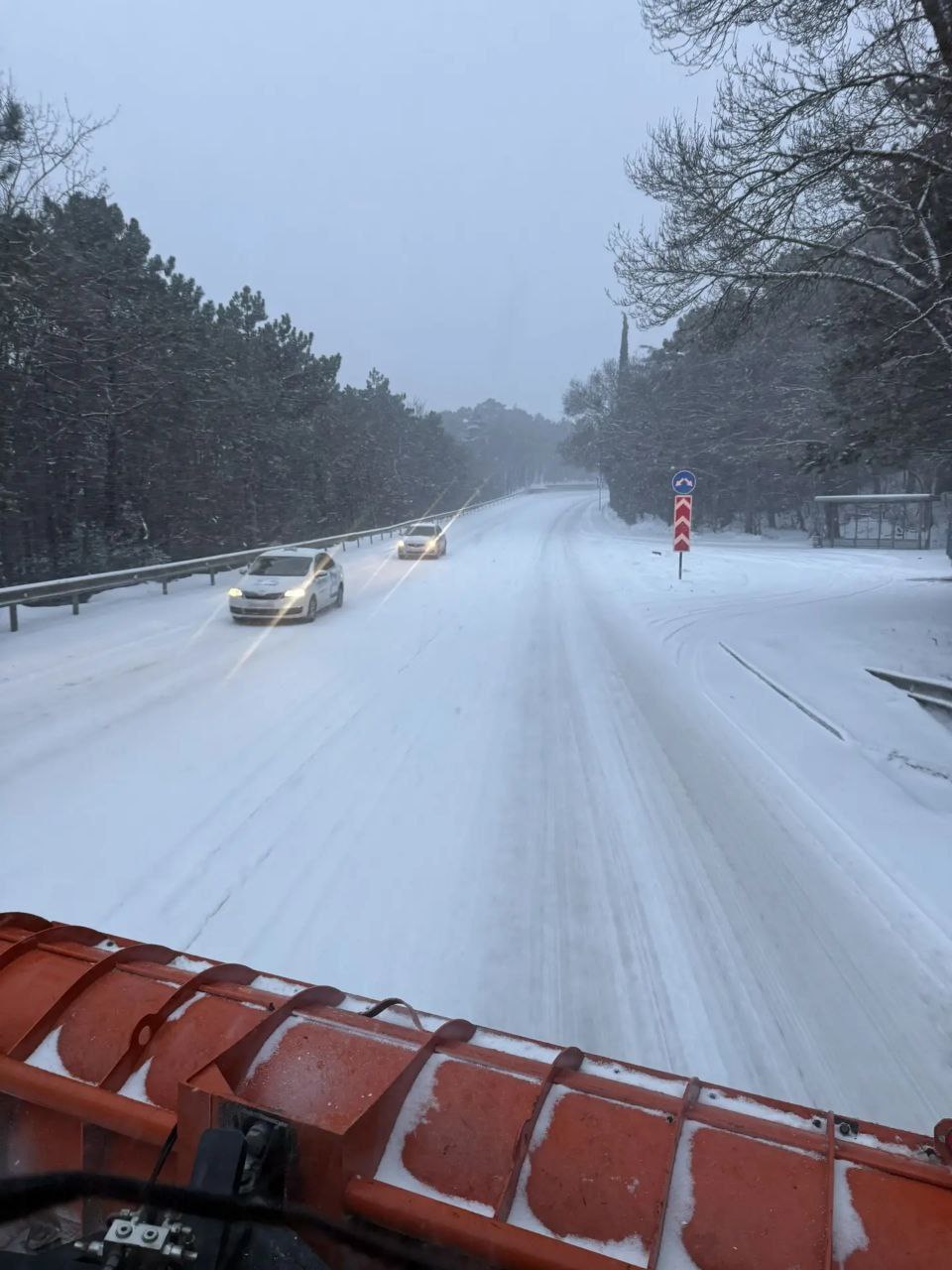 Дорожники очищают участок трассы Ялта — Севастополь от снежных наносов