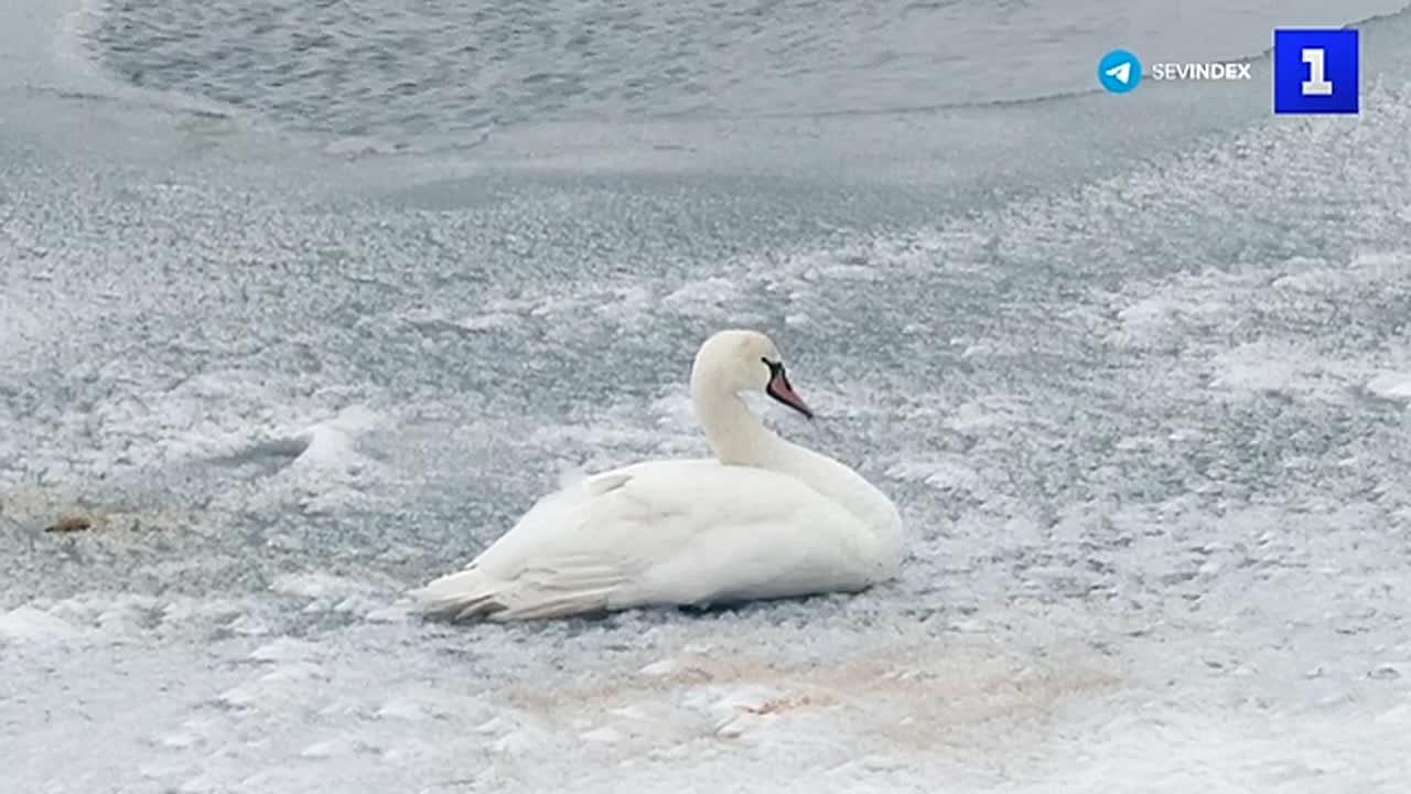В Херсонской области спасли из ледяного плена раненого лебедя