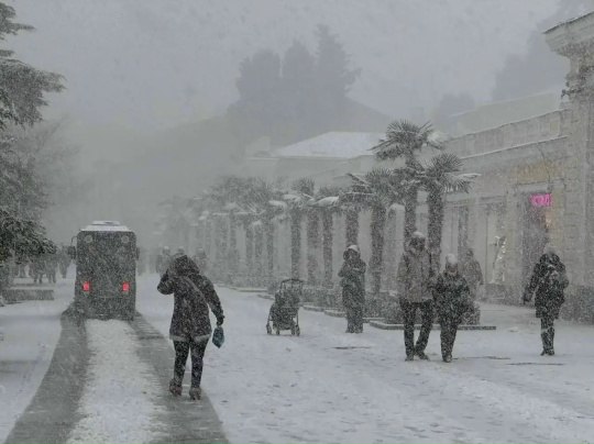 В Ялте очень снежно: в городе из-за сильных осадков действует оперштаб