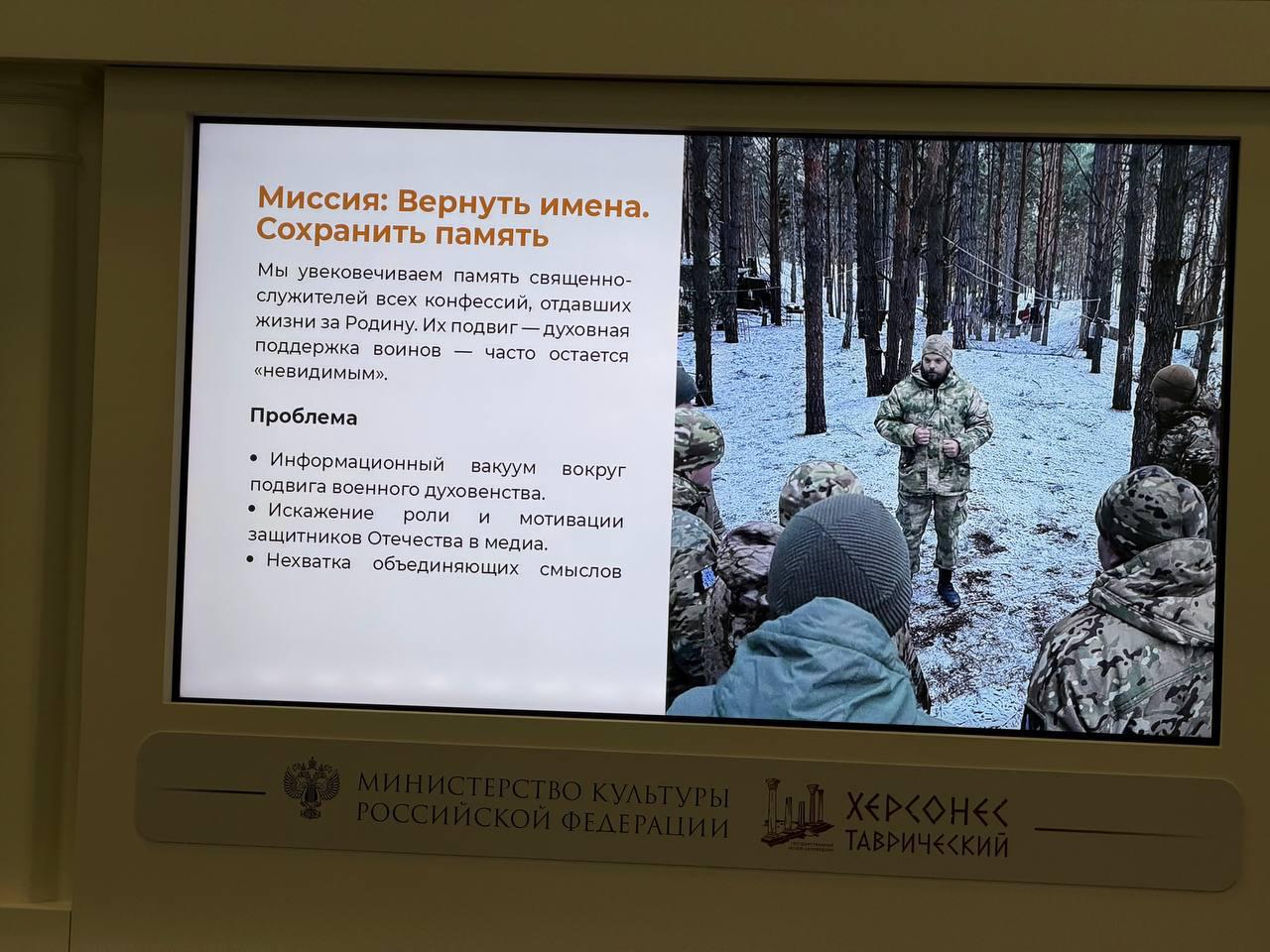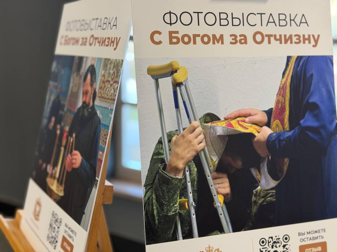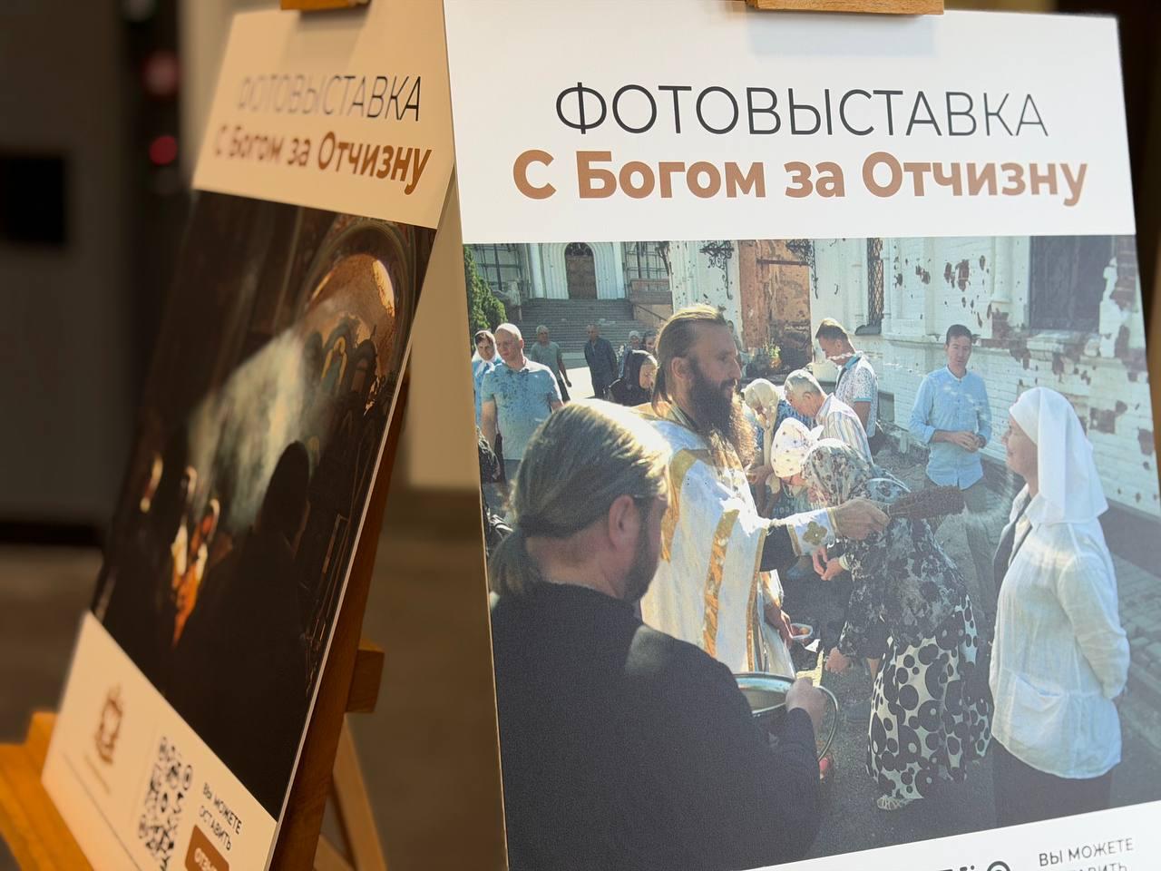 Экспозиция посвящена священнослужителям, которые оказывают духовную поддержку военнослужащим, находящимся в зоне специальной военной операции.