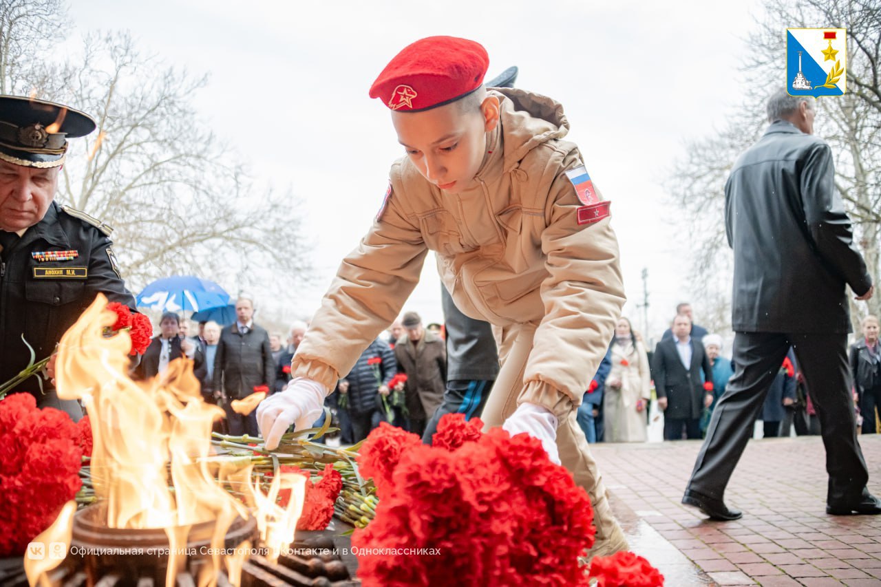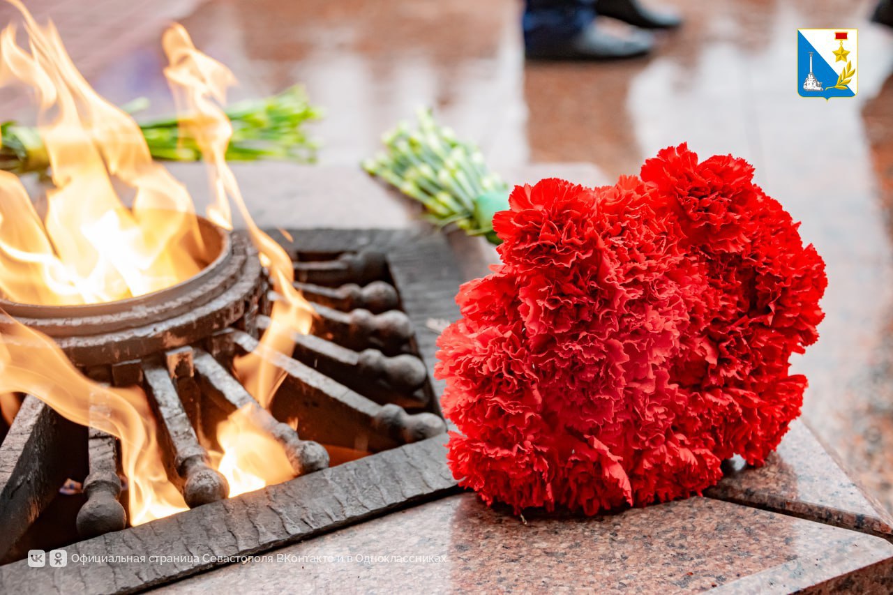 В память о страшных днях представители Правительства, ветераны, военнослужащие и общественники возложили цветы к Вечному огню у Мемориала героической обороны Севастополя.