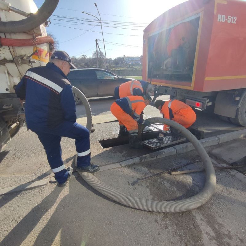 Водоканал: Рабочие моменты. Прочистка ливневых коллекторов спецтехникой на ул. Карантинной и ул. Пожарова Фото Николая Ерёмина