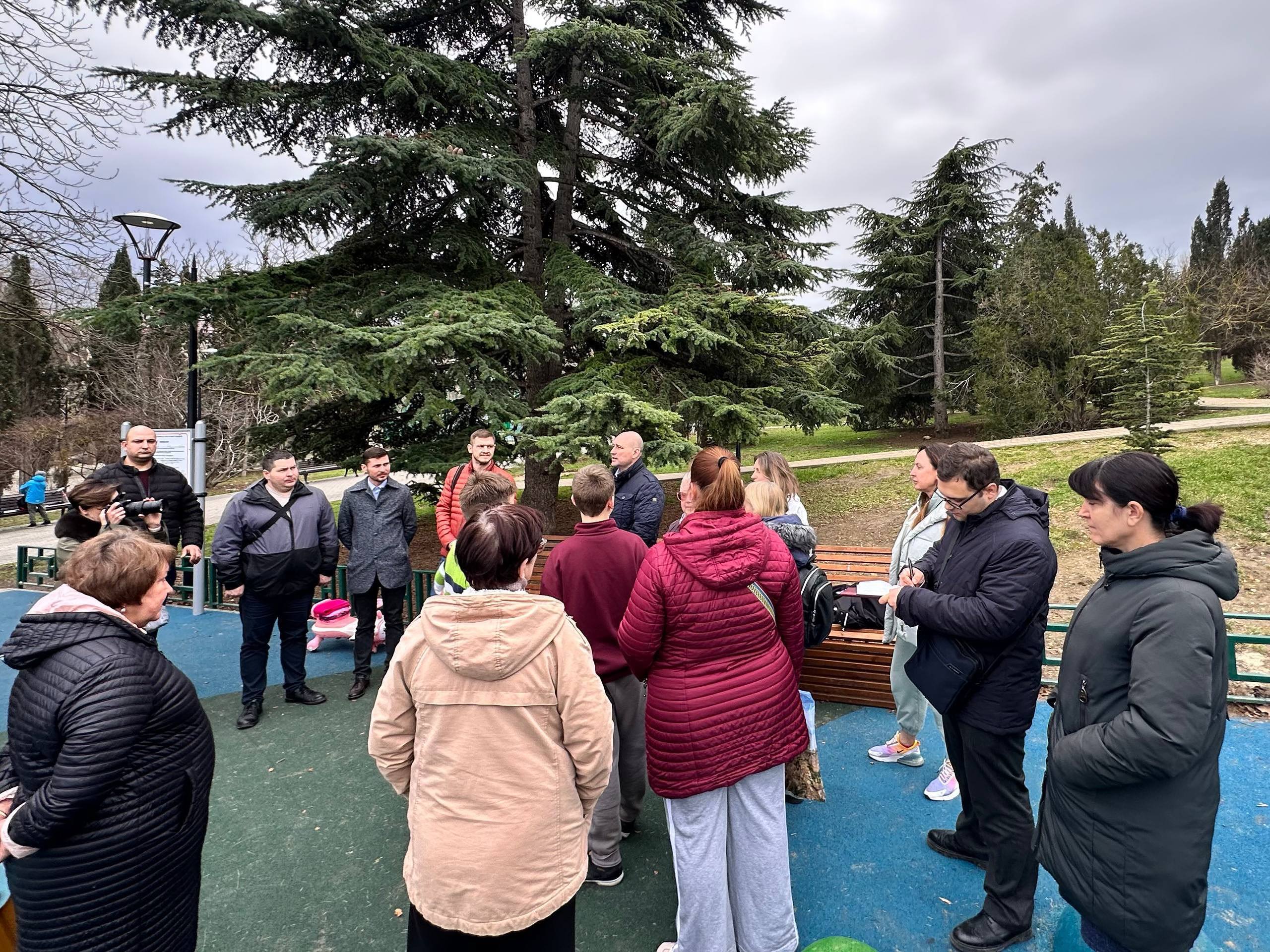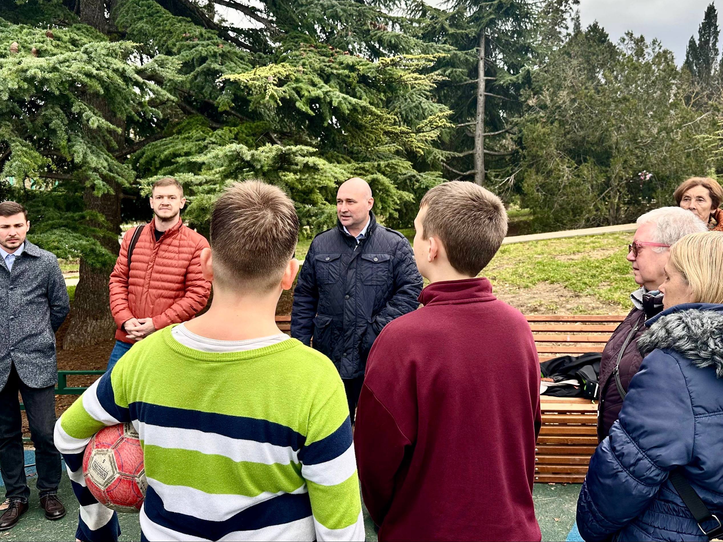 В сквере Севастопольских курсантов встретились с жителями близлежащих домов, чтобы обсудить завершающийся этап благоустройства детской площадки и планы по дальнейшему развитию территории.