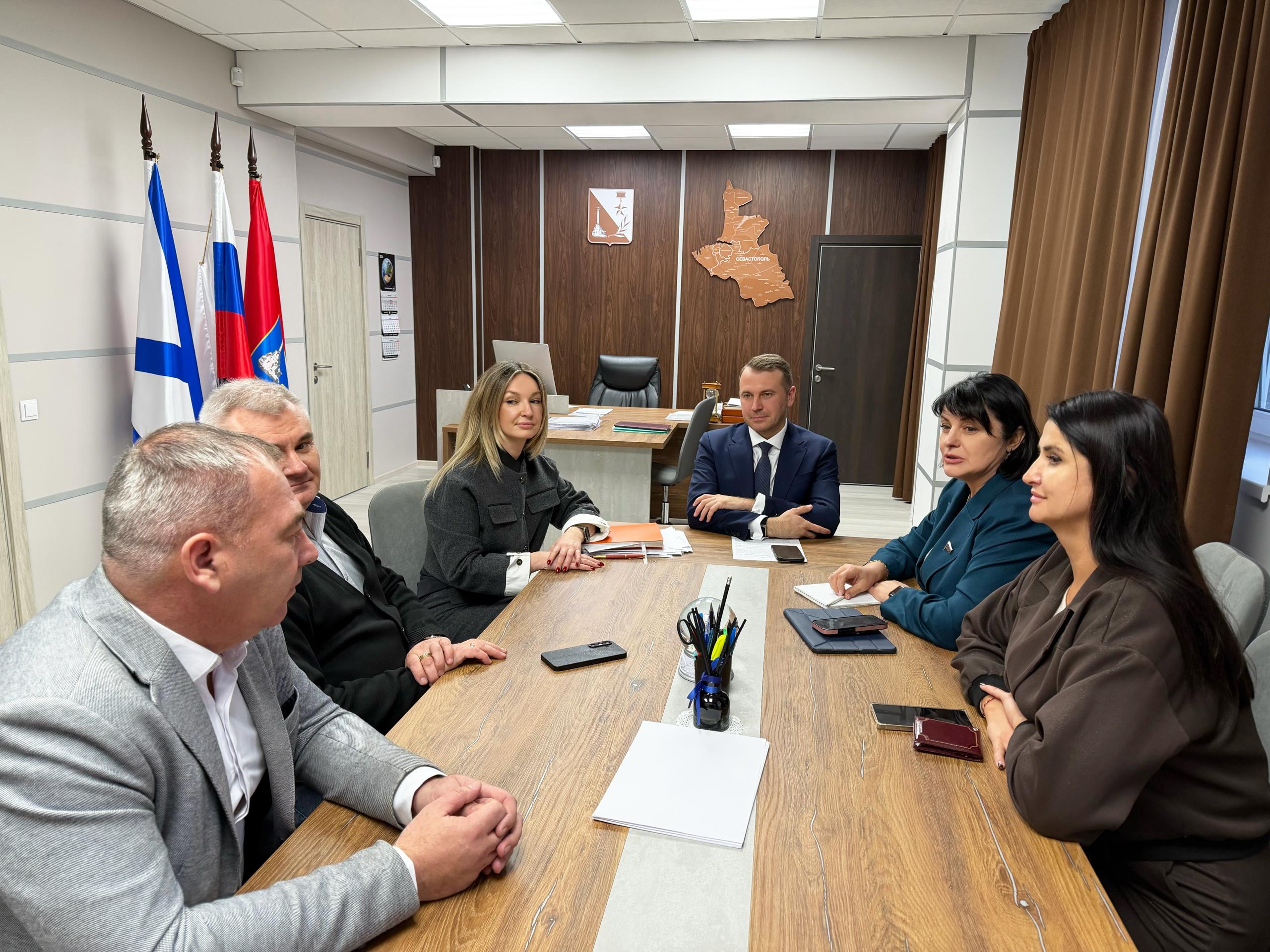 Провели рабочую встречу с исполняющим обязанности заместителя Губернатора города Севастополя Денисом Профатиловым, директором Департамента по имущественным и земельным отношениям города Севастополя Валерией Ульянкиной, Главой Орлиновского муниципального округа Александром Богушем, заместителем Главы Балаклавского муниципального округа Юлией Липовкой, а также моим помощником Тимофеем Цымбалистым.