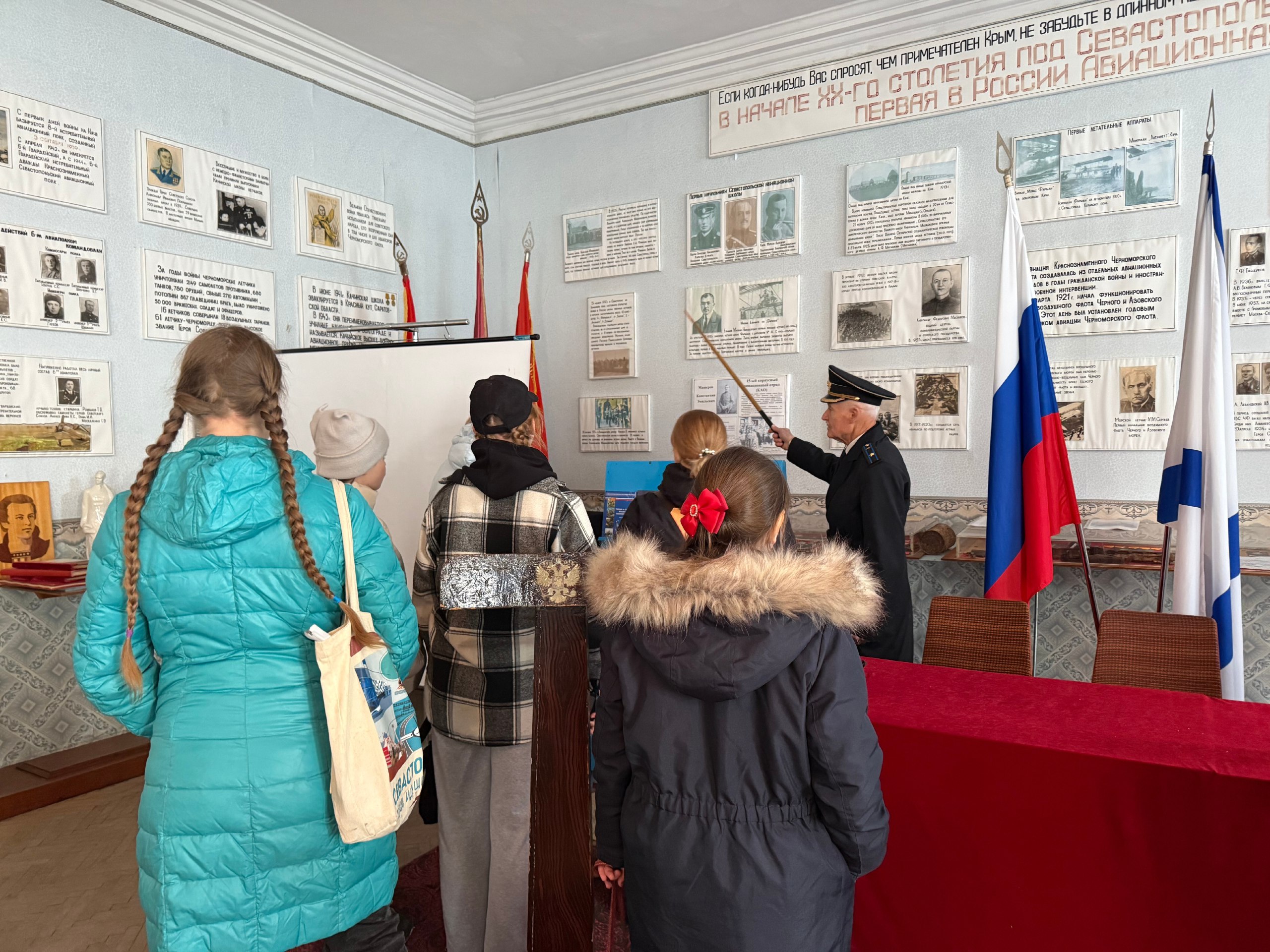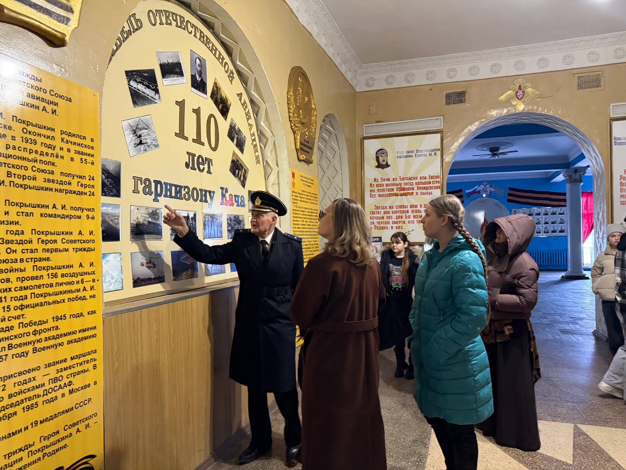 Посёлок Кача посетили артисты студии актерского мастерства города Севастополя «Преображение» Севастопольского регионального отделения Союза женщин России. Под руководством председателя Совета ветеранов поселка Кача Анатолия Петровича Станкевича актерский состав совершил визит в колыбель российской авиации, где участники студии погрузились в изучение истории российских летчиков и первой летной школы нашей страны. Этот уникальный опыт позволит актерам лучше прочувствовать дух прошлого, проникнуться героизмом первых авиаторов и вдохновиться традициями отечественной авиации. Посещение исторических мест стало важным этапом творческого развития коллектива, расширив горизонты понимания искусства, что позволит им в дальнейшем использовать полученные знания в постановке новых спектаклей.