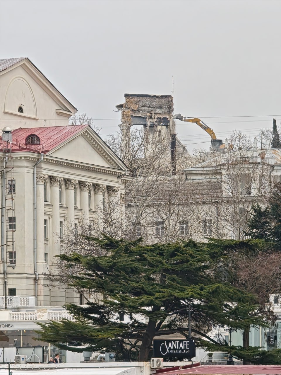 Демонтаж бывшего штаба Черноморского флота на центральном холме в Севастополе. Здание получило существенные повреждения после попадания крылатых ракет 22.09.2023.