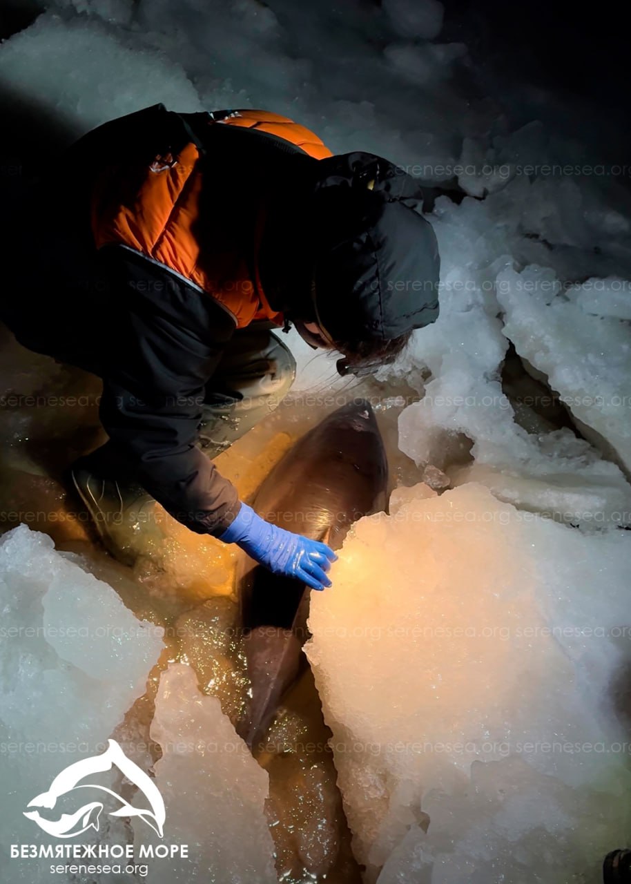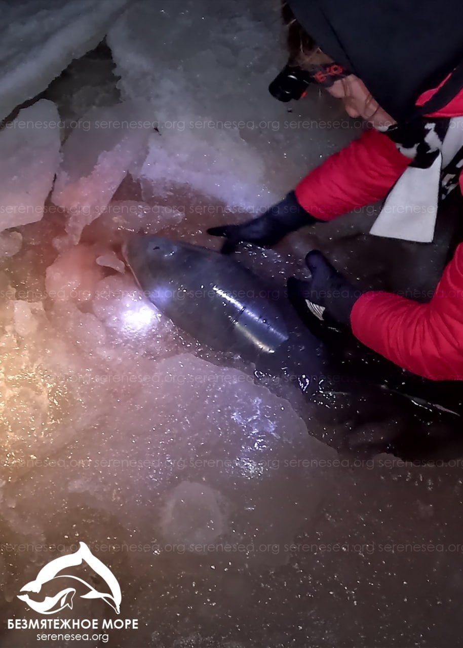Три дельфина-азовки погибли в ледовом плену у берегов Крыма в Азовском море