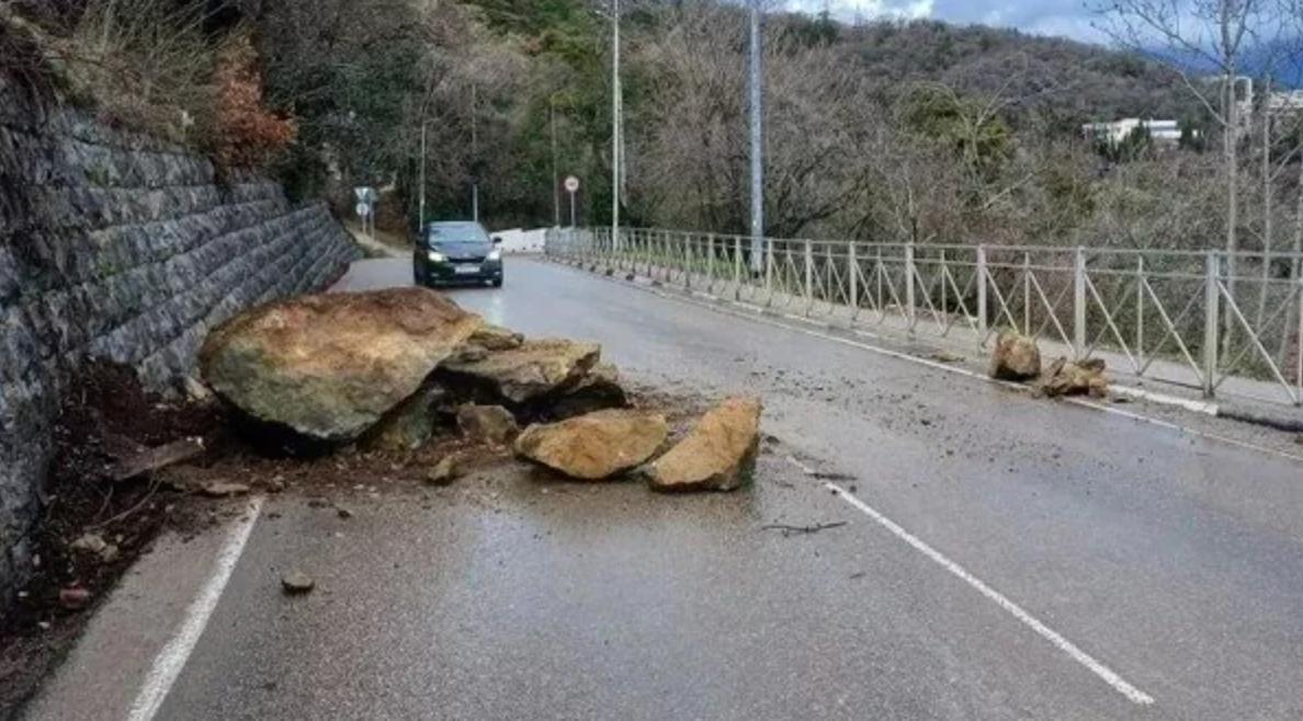 На дороге Гончарное – Ялта произошёл сход камней с косогора на проезжую часть