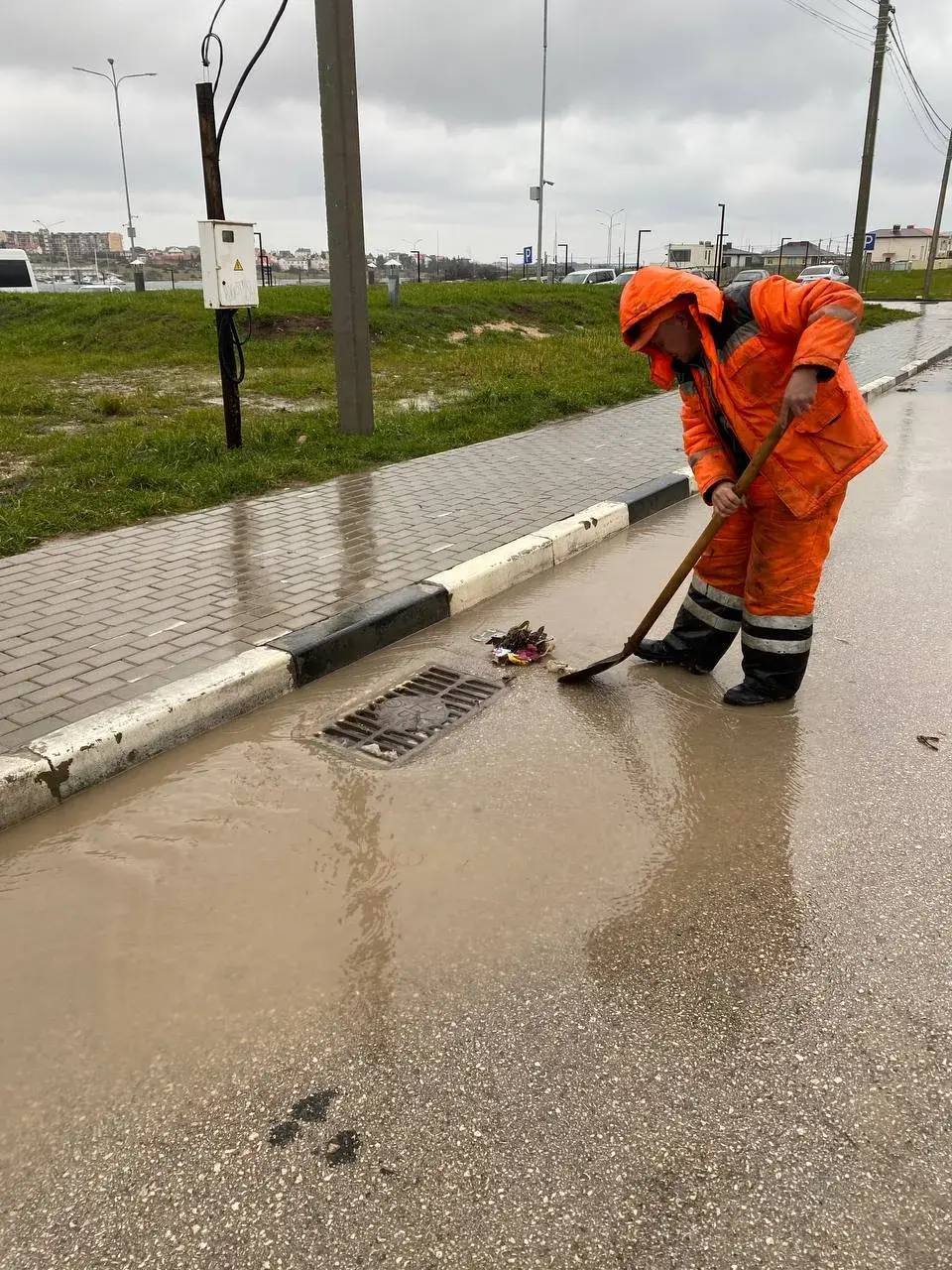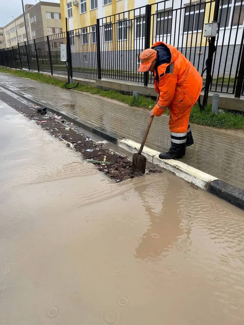 Бригады вручную расчищают ливневые канализации возле школы в Казачьей бухте, Инкермане, а также на улицах Степаняна, Фадеева и Коралловой, чтобы не допустить большого скопления воды на проезжей части.