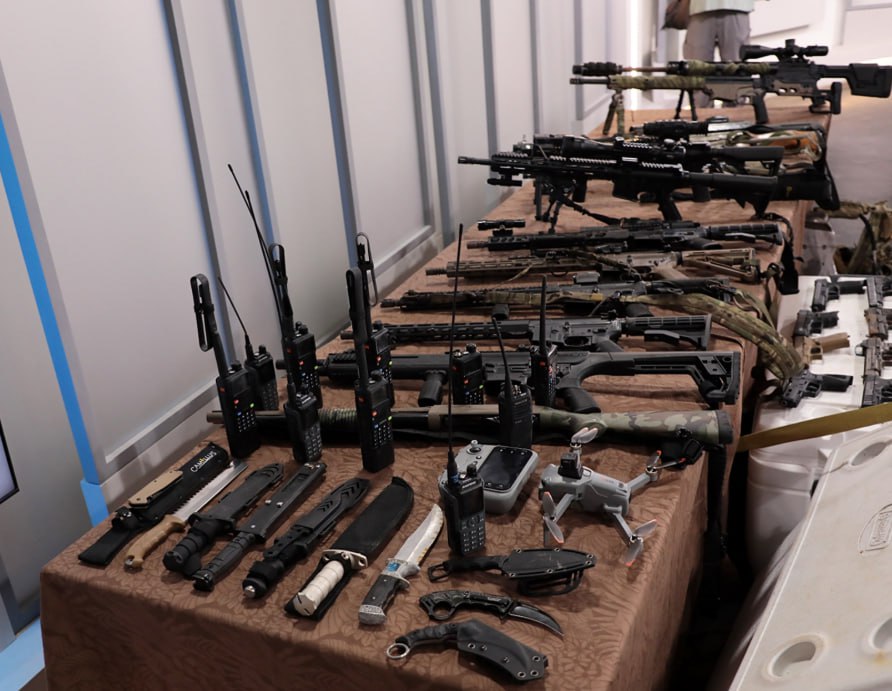 Всего было изъято 134 магазина и 12 846 патронов различных калибров, включая 5.56x45 мм и 7.62 мм (АКМ). Один из пистолетов обладал способностью пробивать бронежилеты. Кроме того, конфискованы дрон с двумя камерами, 10 устройств связи, десантные ножи, портативная электростанция, болторез для вскрытия замков и идентификационные эмблемы, в том числе так называемого контрреволюционного движения «30 ноября» и знаки «самообороны народа».
