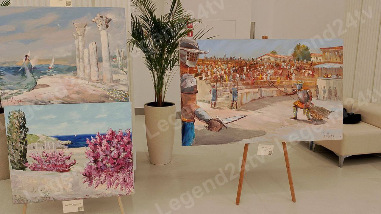 Здесь представлены пейзажи древнего города в течение последних 15 лет. На 21 полотне - мерцающее море, свет тёплого камня, колонны и остатки античных построек.