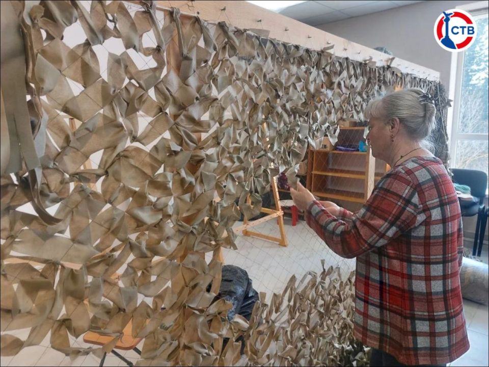Депутат Госдумы встретилась во дворце культуры Сахарной Головки с волонтёрами, которые плетут маскировочные сети для защитников страны, и поздравила их с наступающим праздником.