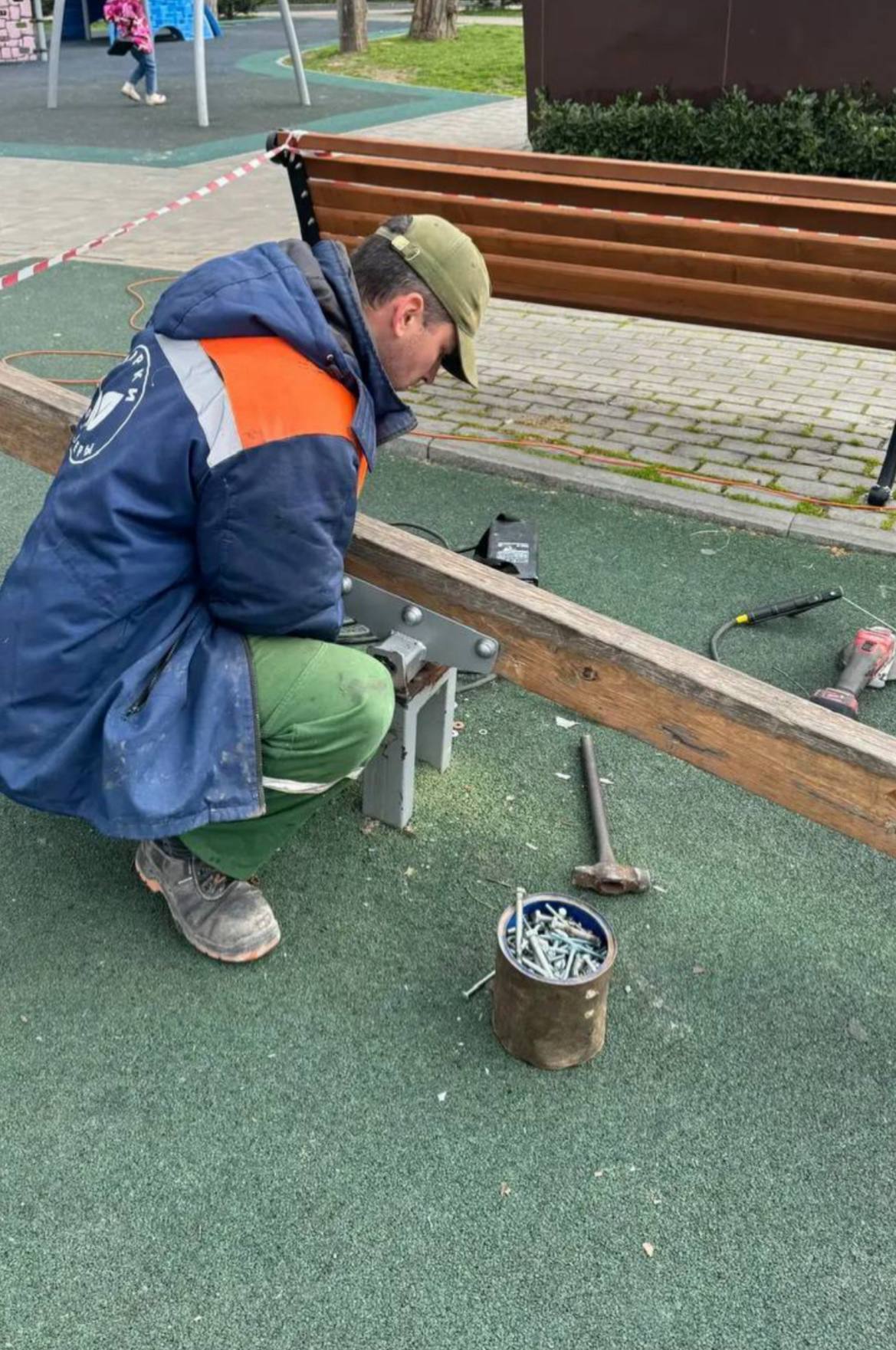 Специалисты «Парки и скверы» Севастополя мониторят состояние инвентаря на игровых площадках, а также выполняют ремонт и профилактические работы на постоянной основе