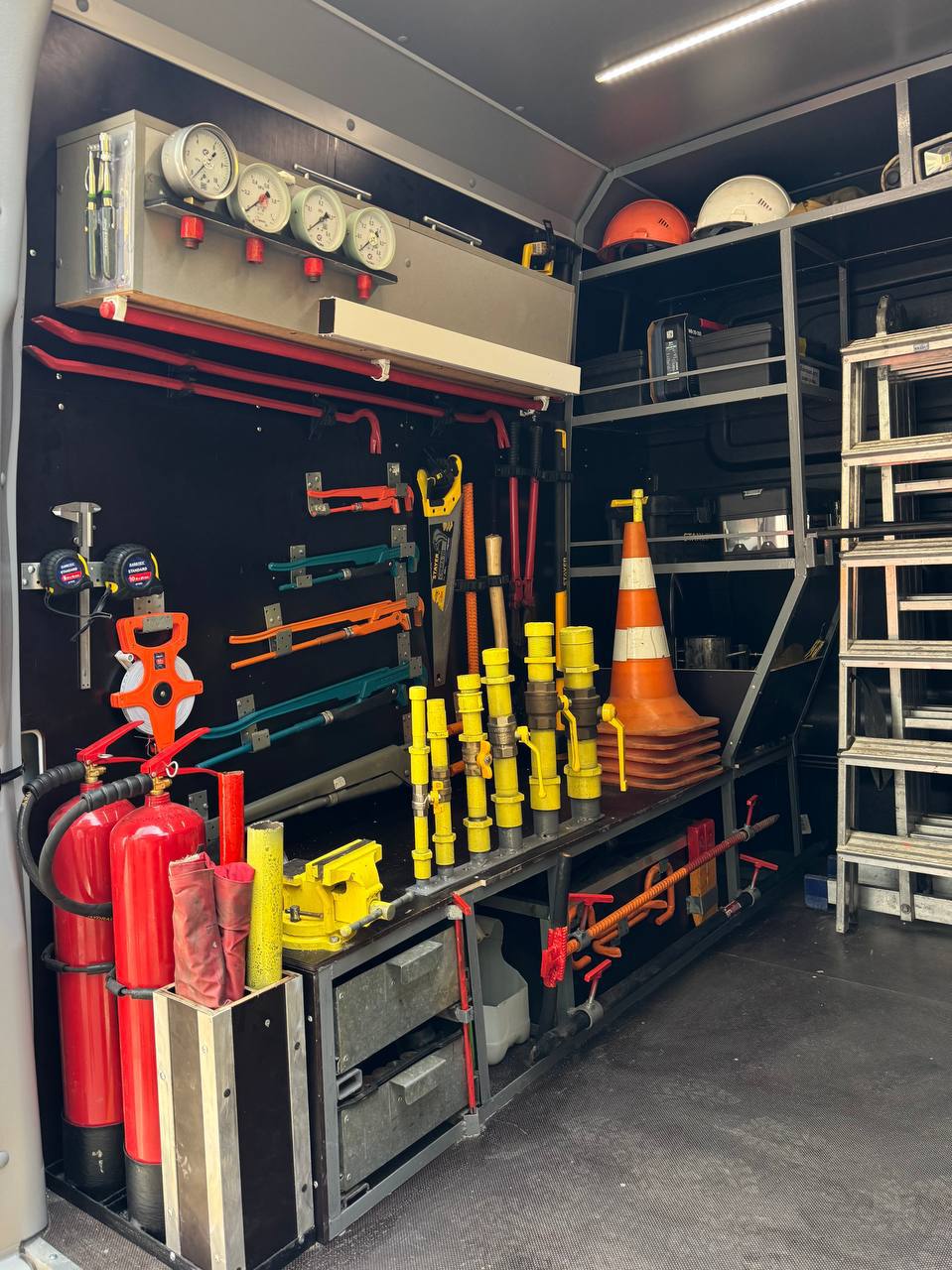 • полный набор профессионального инструмента для работ по локализации и ликвидации аварий;