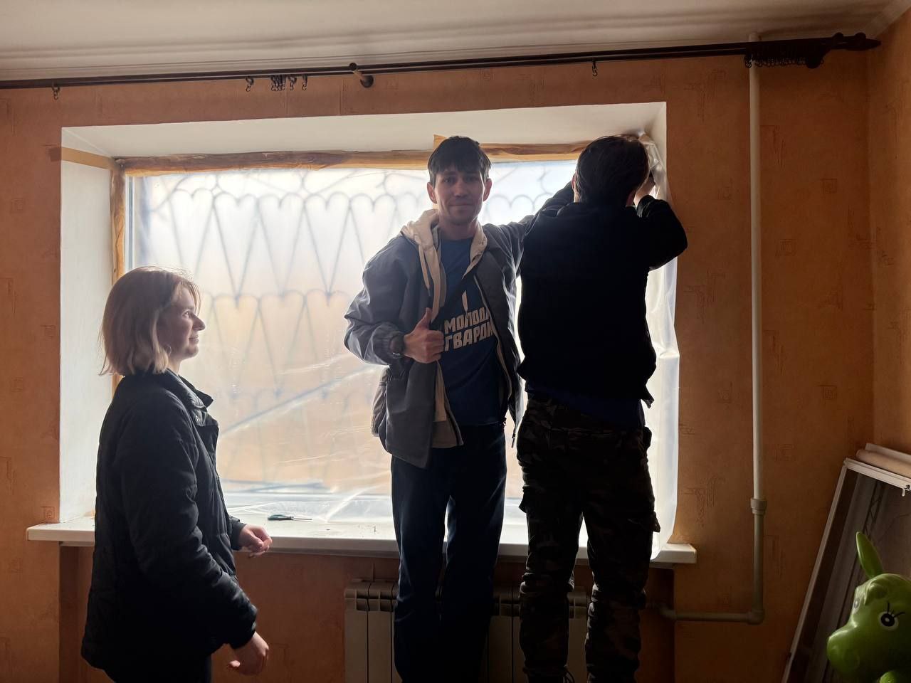 Активисты «Единой России», депутаты, волонтеры МГЕР и Ассоциации ветеранов СВО помогают жильцам дома: убирают мусор, заклеивают пленкой выбитые окна, доставляют необходимые материалы.