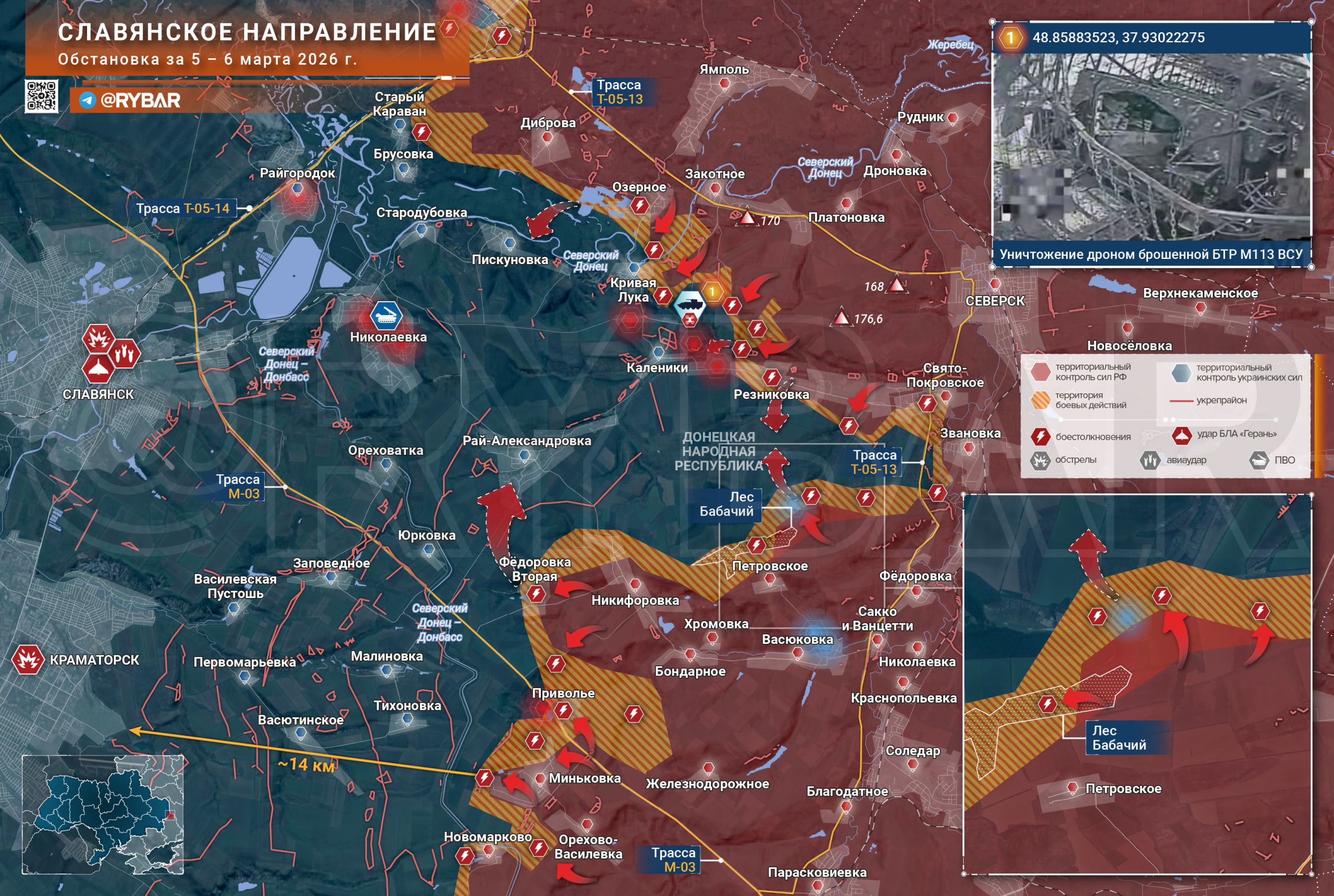 На Славянском направлении штурмовики занимают новые позиции у трассы М-03, постепенно продвигаясь в сторону Славянско-Краматорской агломерации. Противник проводит вывез троллейбусы и в срочном порядке обустраивает противодроновые тоннели, готовя города к обороне.