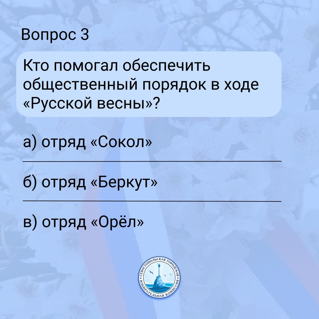 Викторина к годовщине воссоединения Севастополя и Крыма с Россией!