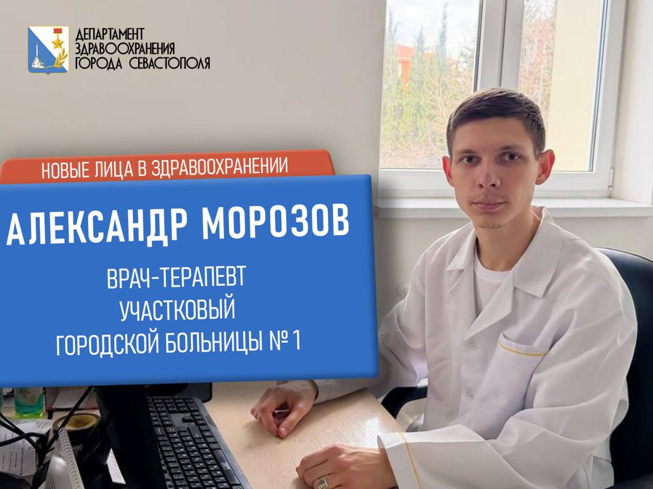 Департамент здравоохранения Севастополя продолжает знакомить севастопольцев с новыми специалистами в рамках проекта «Новые лица здравоохранения». Сегодня наш герой — молодой врач-участковый терапевт поликлиники № 2 Городской больницы № 1 Александр Морозов.
