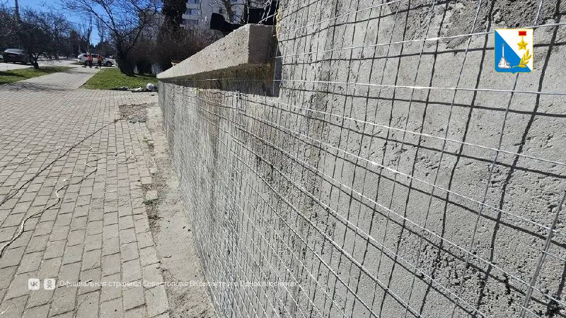 Подпорные стены на улице Вакуленчука готовят к облицовке известняковыми плитами