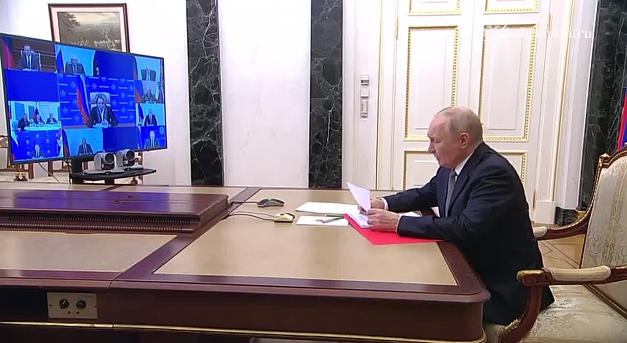 Путин провёл по видеосвязи оперативное совещание с постоянными членами Совета Безопасности.