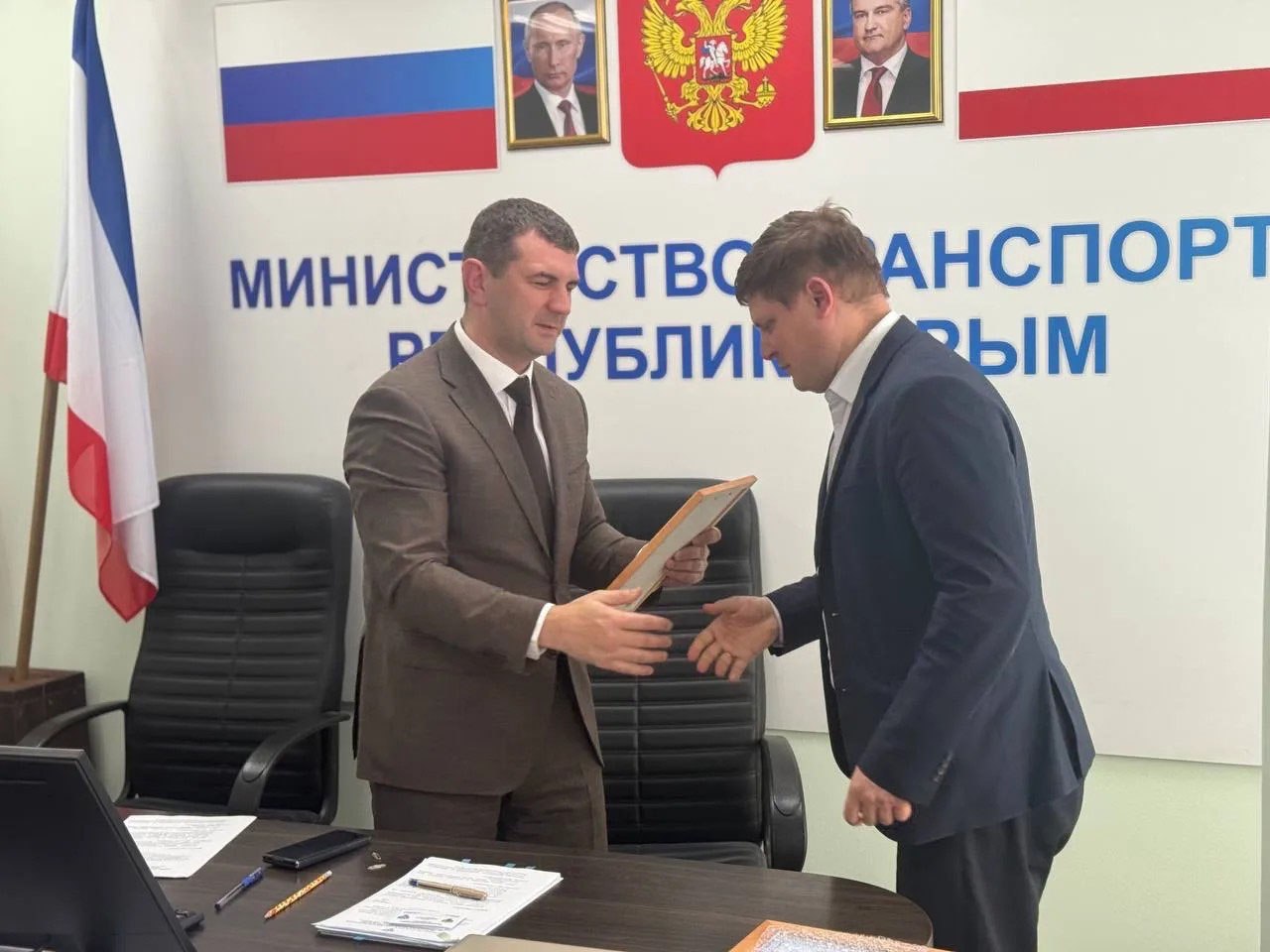 В Министерстве транспорта Республики Крым состоялась рабочая встреча под руководством генерального директора ФБУ «Росавтотранс» Евгения Мошина. Мероприятие было посвящено вопросам развития транспортной инфраструктуры и перевозки пассажиров автомобильным транспортом в Республике Крым и городе Севастополе.