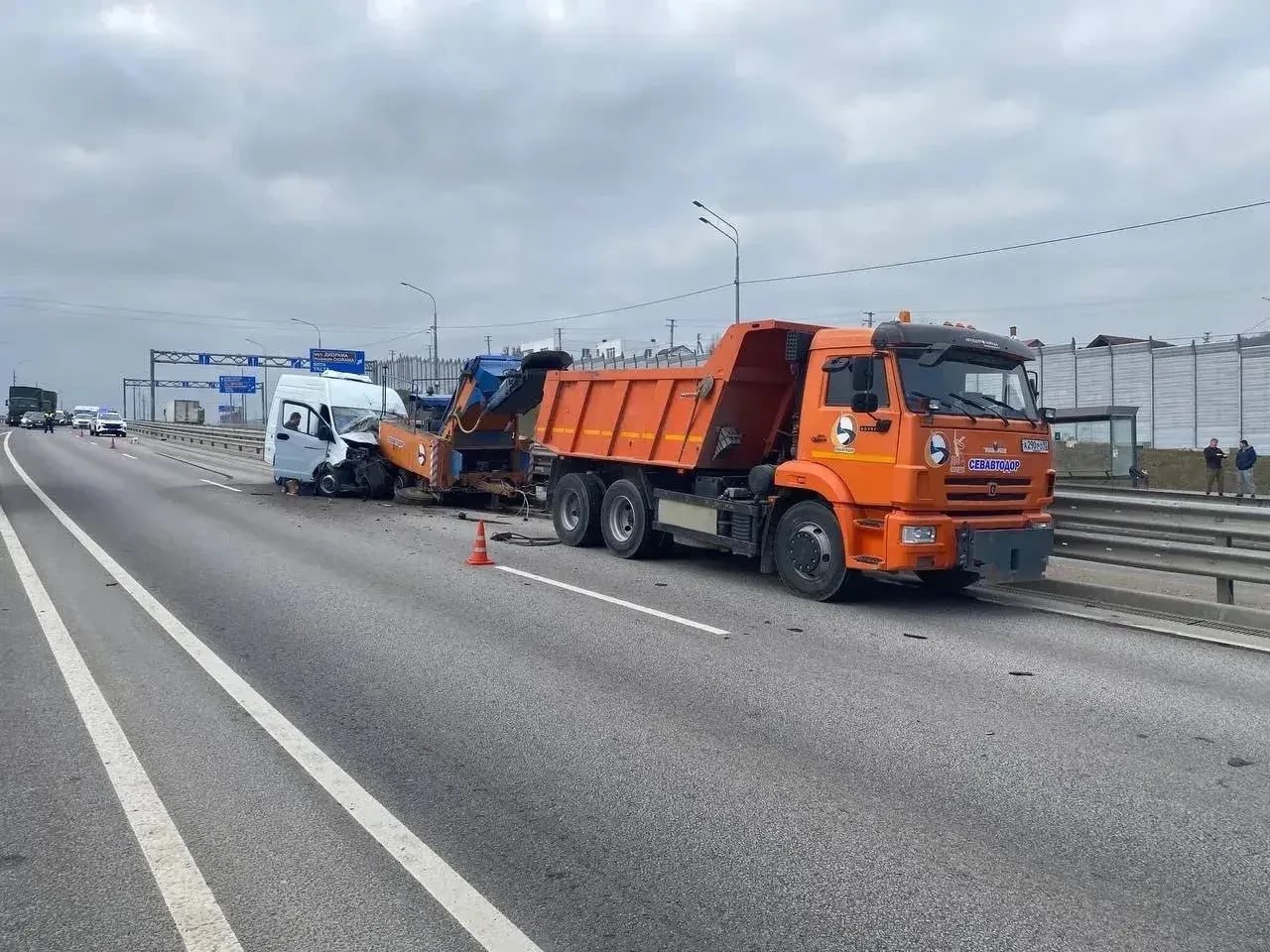 Водитель микроавтобуса влетел в спецтехнику и пострадал в Севастополе.