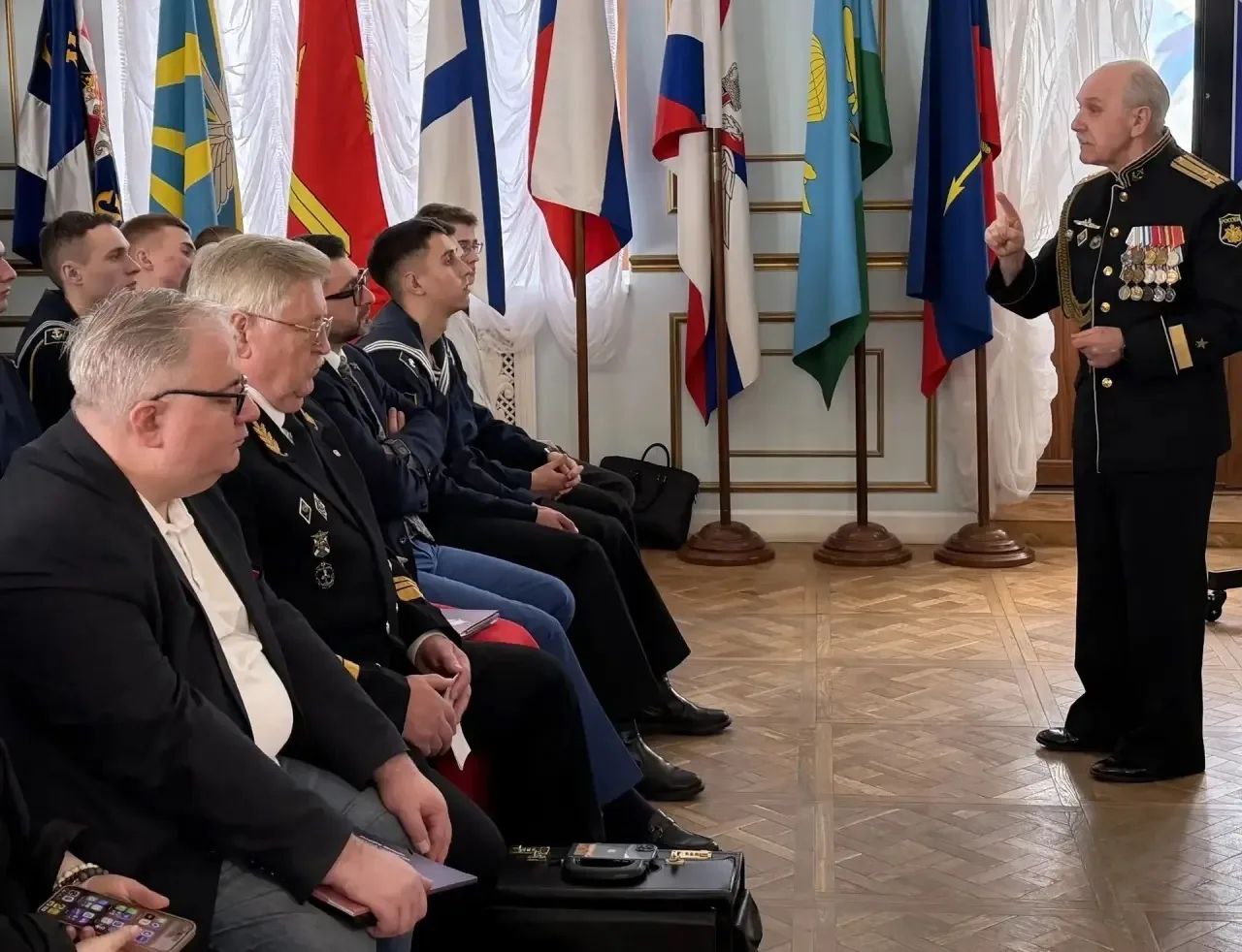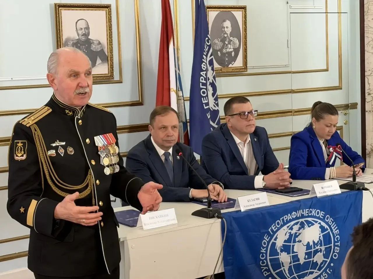Перед собравшимися, выступили председатель СГО РГО В.Воробьев, председатель комиссии Заксобрания по социальной политике, депутат Законодательного Собрания, Севастополя А. Кулагин, начальник ДОФ ЧФ, председатель Морской коллегии СГО РГО В.Пискайкин, почётный председатель Севастопольского морского собрания В. Кот, руководитель Севастопольского филиала Банка ПСБ А.Тананян, представитель СевГУ, член Совета СГО РГО С. Рубцова, советник директора Музея обороны Севастополя, член Совета СГО РГО Д. Серов.