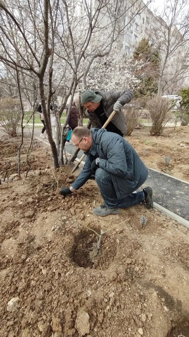 Жители многоквартирных домов, коллективы школ, детских садов, городской больницы №4 высаживали на своих территориях саженцы розы, лаванды, черешни и персика. Работали от мала до велика, дружно и радостно, создавая уют и красоту. С большим удовольствием и сам принял участие в субботнике в нескольких локациях Северной стороны.