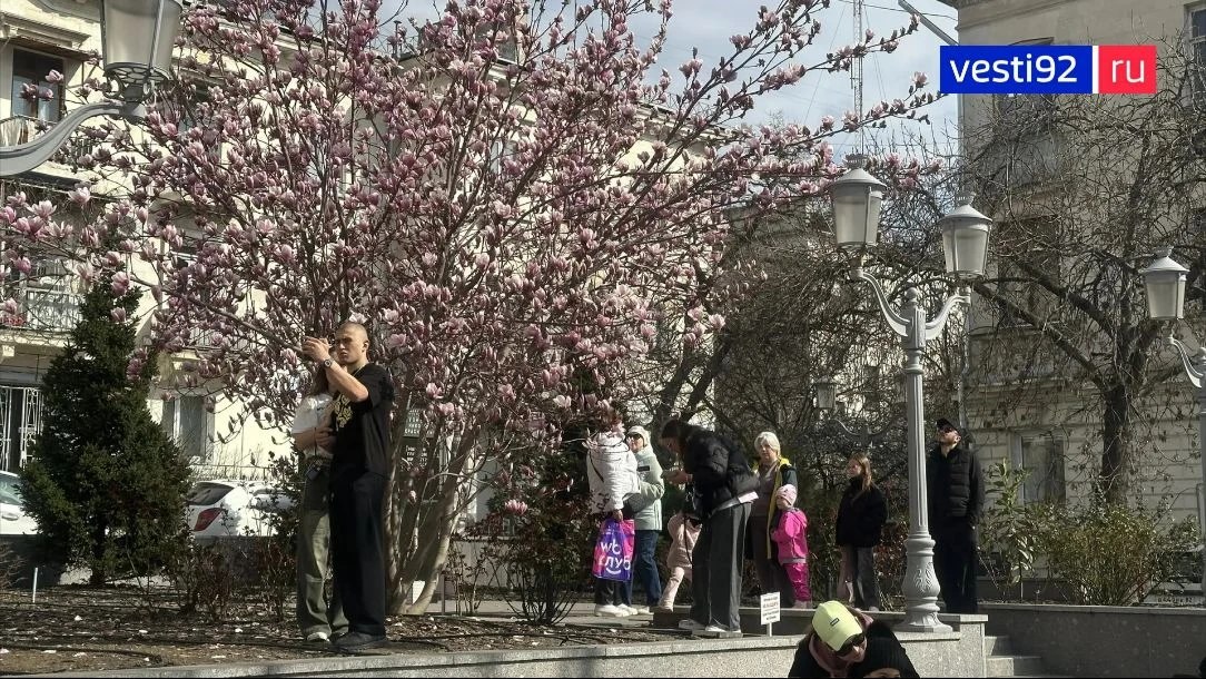 С приходом долгожданного тепла расцветает магнолия — один из символов весны в Севастополе. Жители ежедневно собираются у дерева, чтобы сфотографировать нежно-розовые бутоны