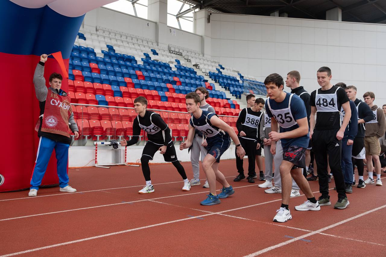 На стадионе участники сдавали нормативы, среди которых были короткая дистанция — бег на 60 метров, а также длинные дистанции: 3 километра для юношей и 2 километра для девушек. Все студенты продемонстрировали высокий уровень физической подготовки и стремление к победе.