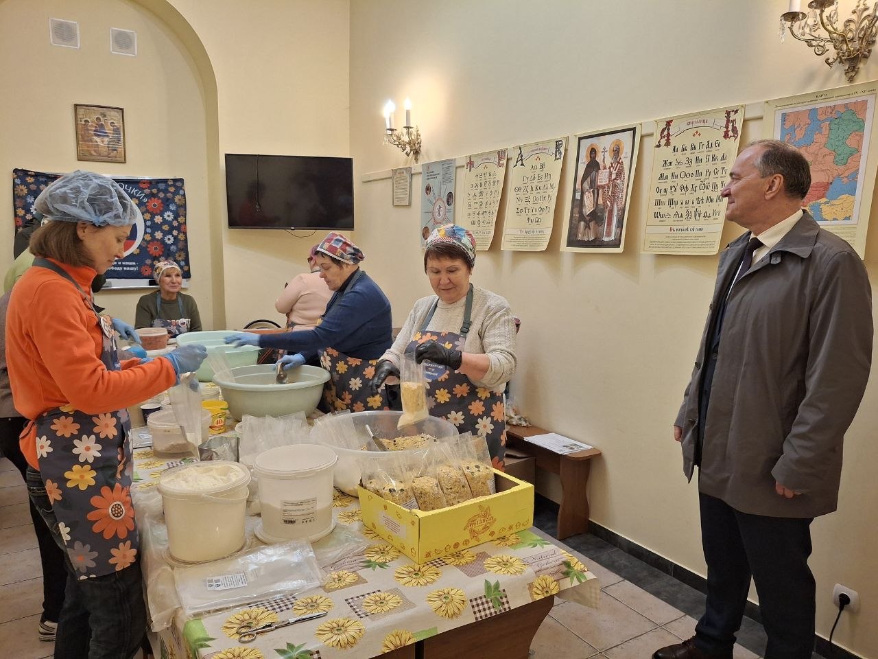 По вторникам «Северяночки» собираются в Храме Вознесения Господня на Северной стороне. Там происходит процесс фасовки и упаковки посылок.
