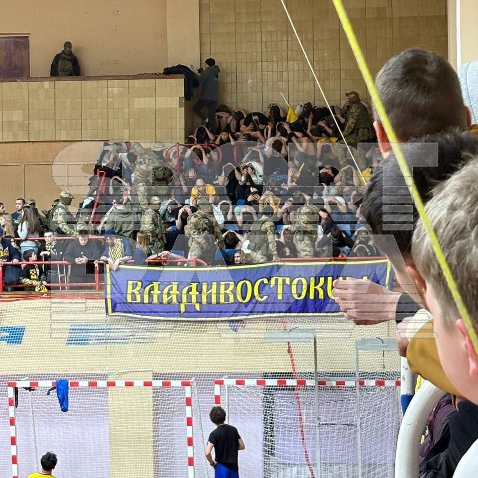 От болельщиков, среди которых также были поклонники «Луча», пришедшие на матч своей команды заранее, потребовали прекратить поддержку команды, а часть из них усадили лицом вниз и завели им руки за головы. Люди в военной форме также находились снаружи арены, проверяя документы у всех выходящих.