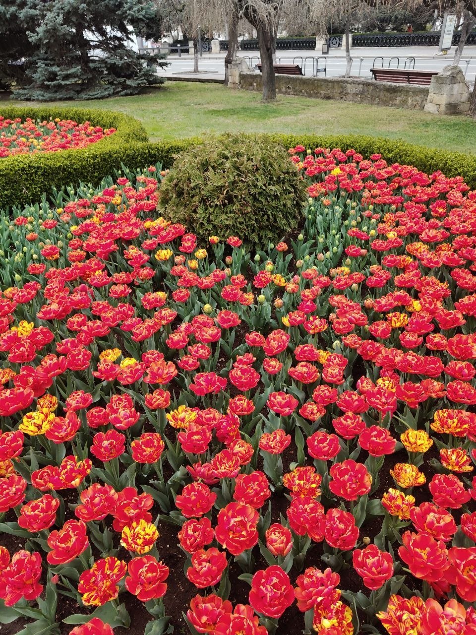 5 апреля в городе днем без осадков. Ветер северо-западный 8-13м/с. Температура воздуха ночью +8...+10°С, днем +14...+16°С, в море +11.