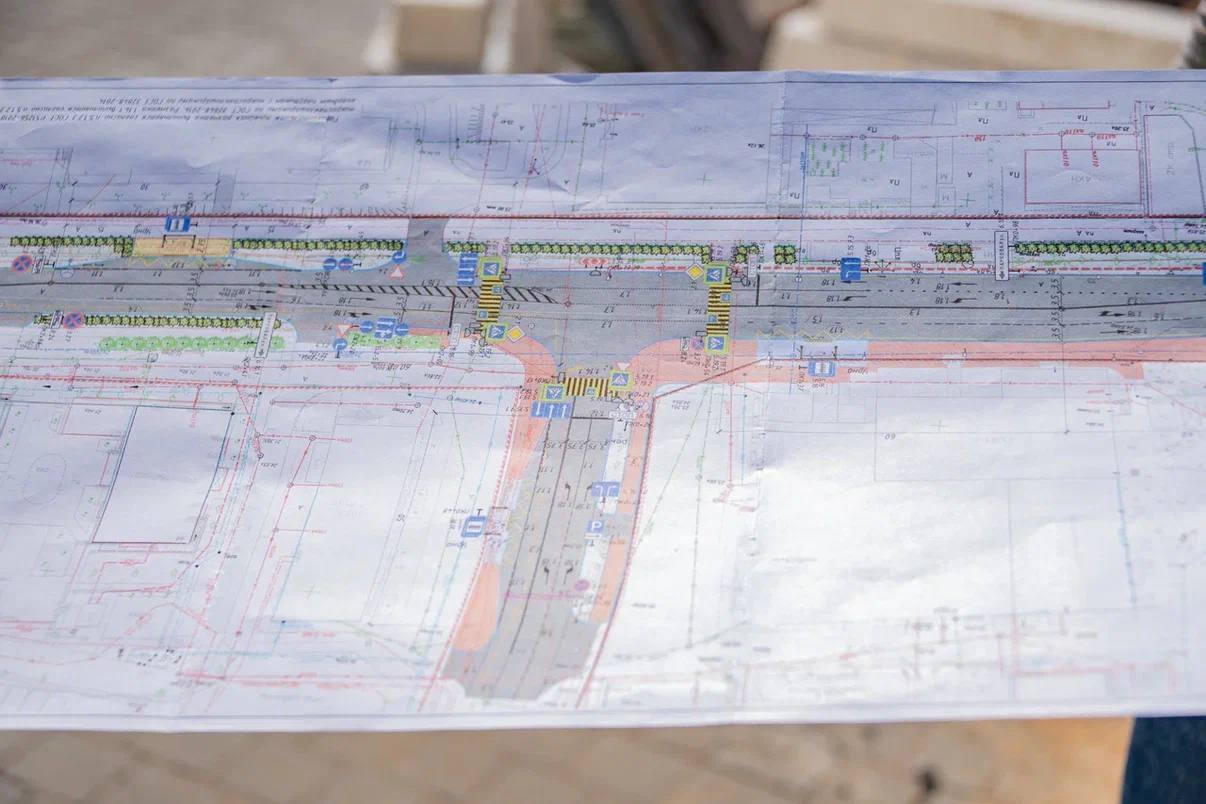 На дороге будет организовано движение по выделенным полосам, вместе привычных трех пешеходных переходов останутся два, но уже со светофорами. Дополнительно установим опоры освещения и перильные ограждения, благоустроим территорию и озеленим ее.