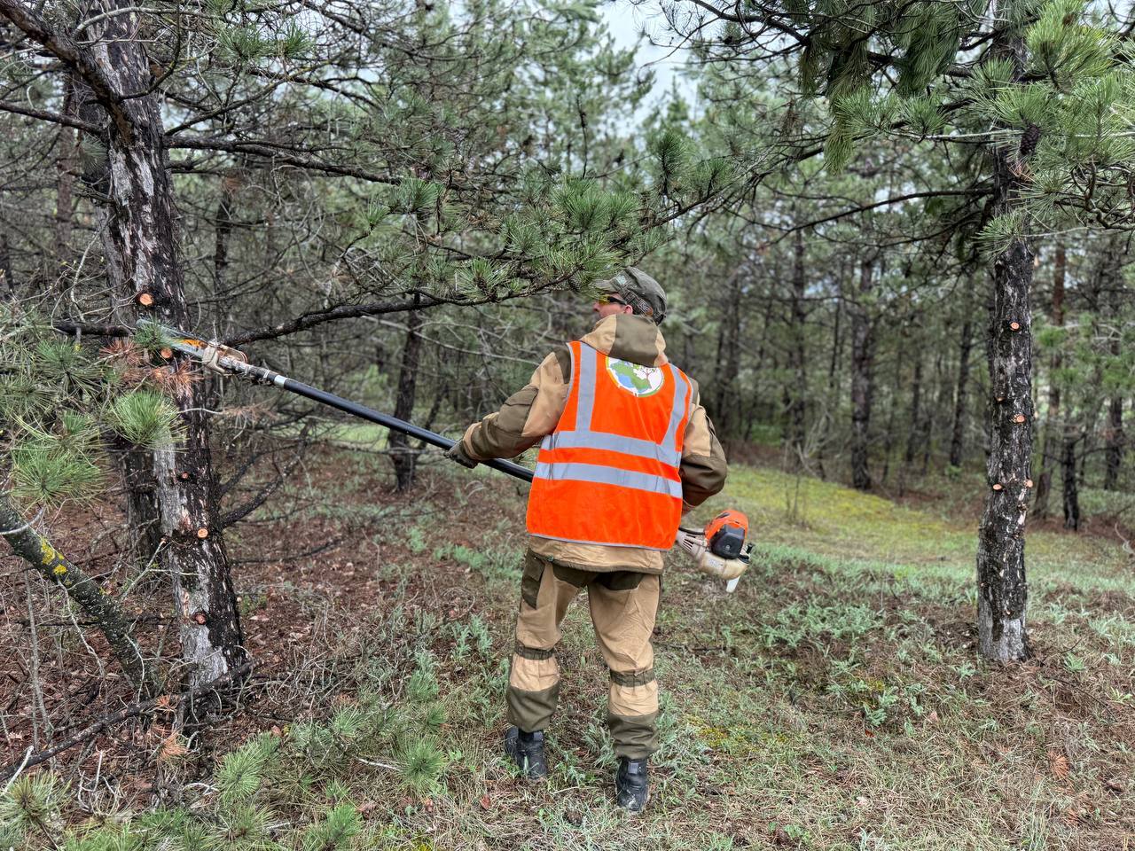 Дирекция особо охраняемых природных территорий и лесного хозяйства проводит обрезку нижних ветвей деревьев в лесничествах. Эта противопожарная мера помогает предотвратить переход огня на кроны.