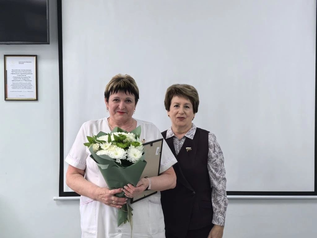 С большой радостью поздравила персонал поликлиники с юбилеем и вручила Благодарственные письма сенатора РФ коллективу и отдельным сотрудникам: