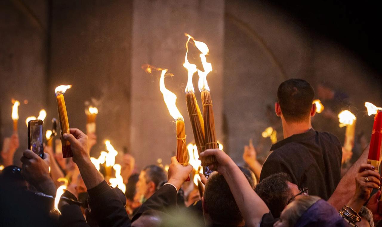 Благодатный огонь сошёл в Храме Гроба Господня в Иерусалиме