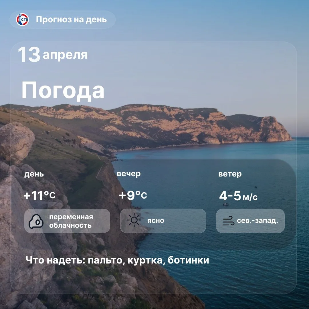Доброе утро, севастопольцы! Сегодня в городе будет облачно с прояснениями. Осадков не ожидается.Температура воздуха поднимется до +11°C. Пусть этот день будет радостным и спокойным.
