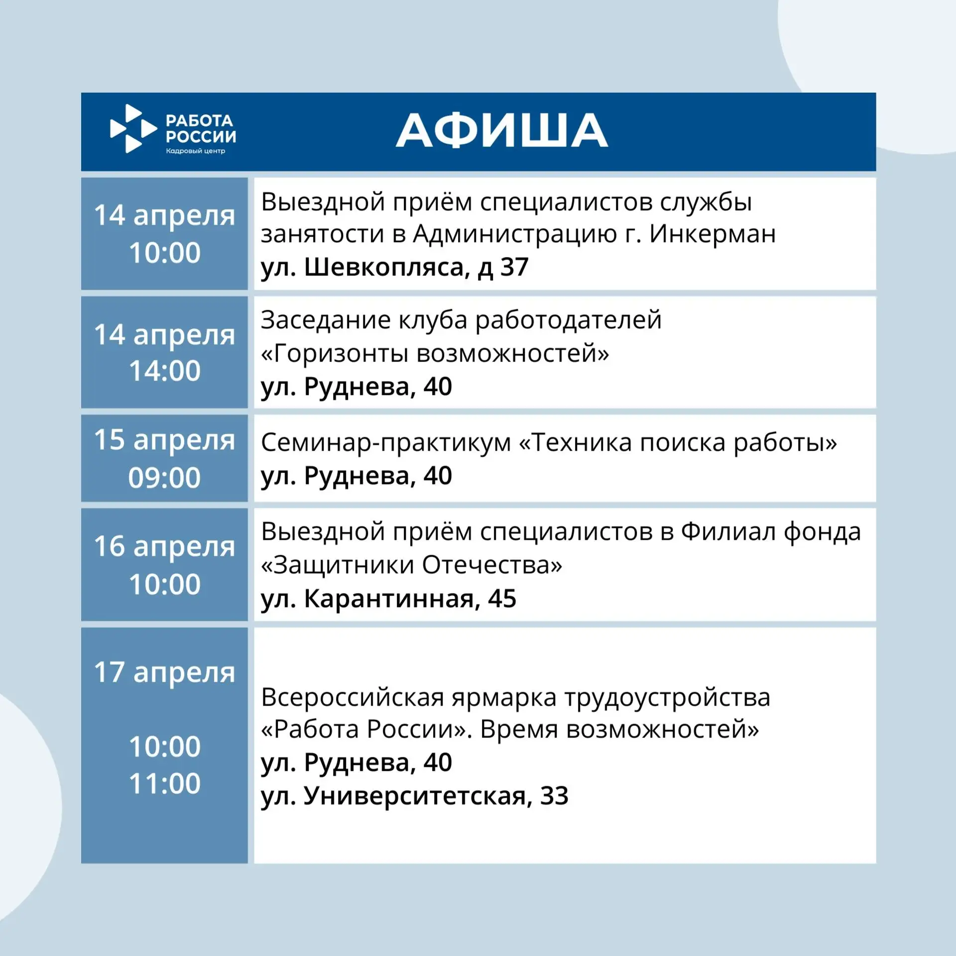 Бесплатные мероприятия Кадрового центра «Работа России» на этой неделе
