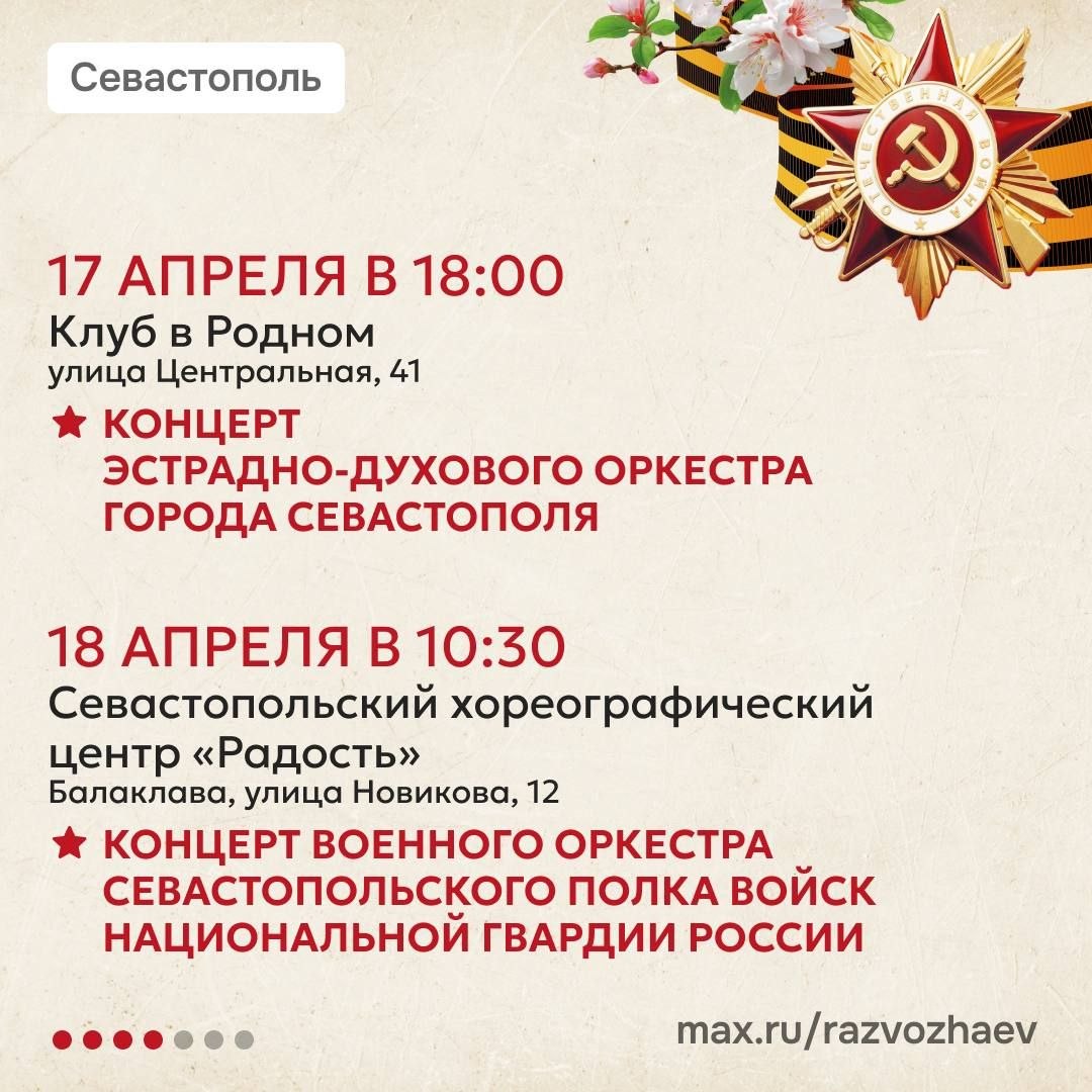 Концерты состоятся в Вишнёвом, Орлином, Солнечном, Родном, Балаклаве, Инкермане, Любимовке, Верхнесадовом и Севастополе. Вход на все мероприятия свободный.