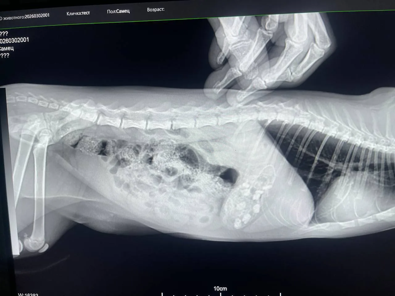 В госветклинику обратились владельцы 4-месячной кошечки по кличке Дюна. Животное чувствовало себя плохо, и хозяева предположили, что питомец съел остатки колбасы. Рентген подтвердил опасения: в желудке обнаружилось 9 инородных предметов.
