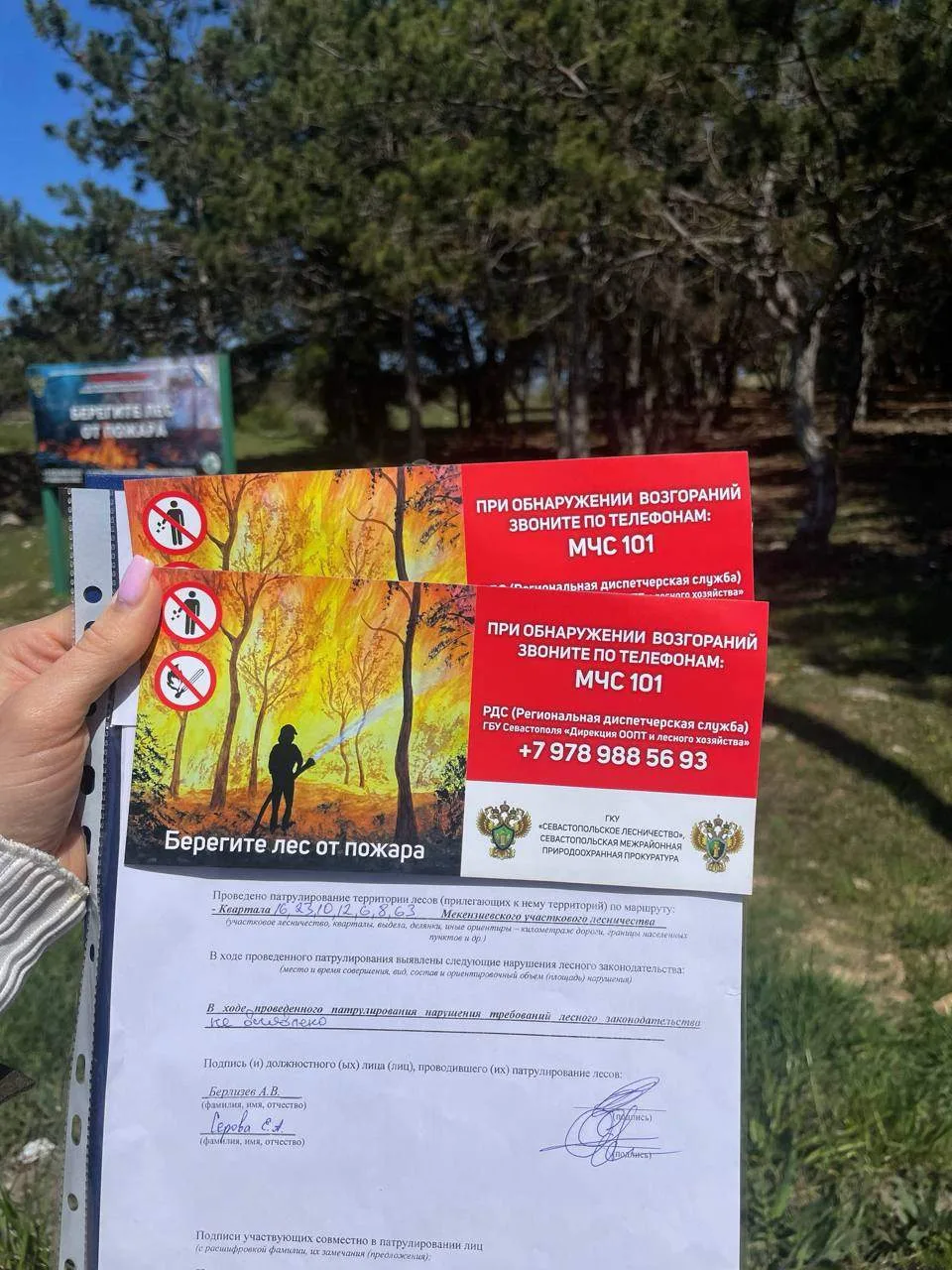 Если заметили дым или возгорание в лесу, сообщите в региональную диспетчерскую службу или МЧС по номерам 101 или 112.