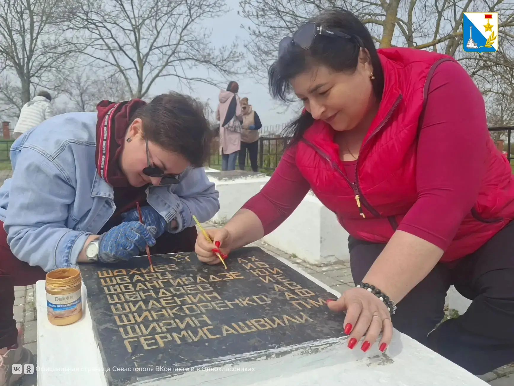 На субботник вышли сотрудники департамента внутренней политики. Территорию очистили от мусора и листвы, а также обновили надписи с именами героев.