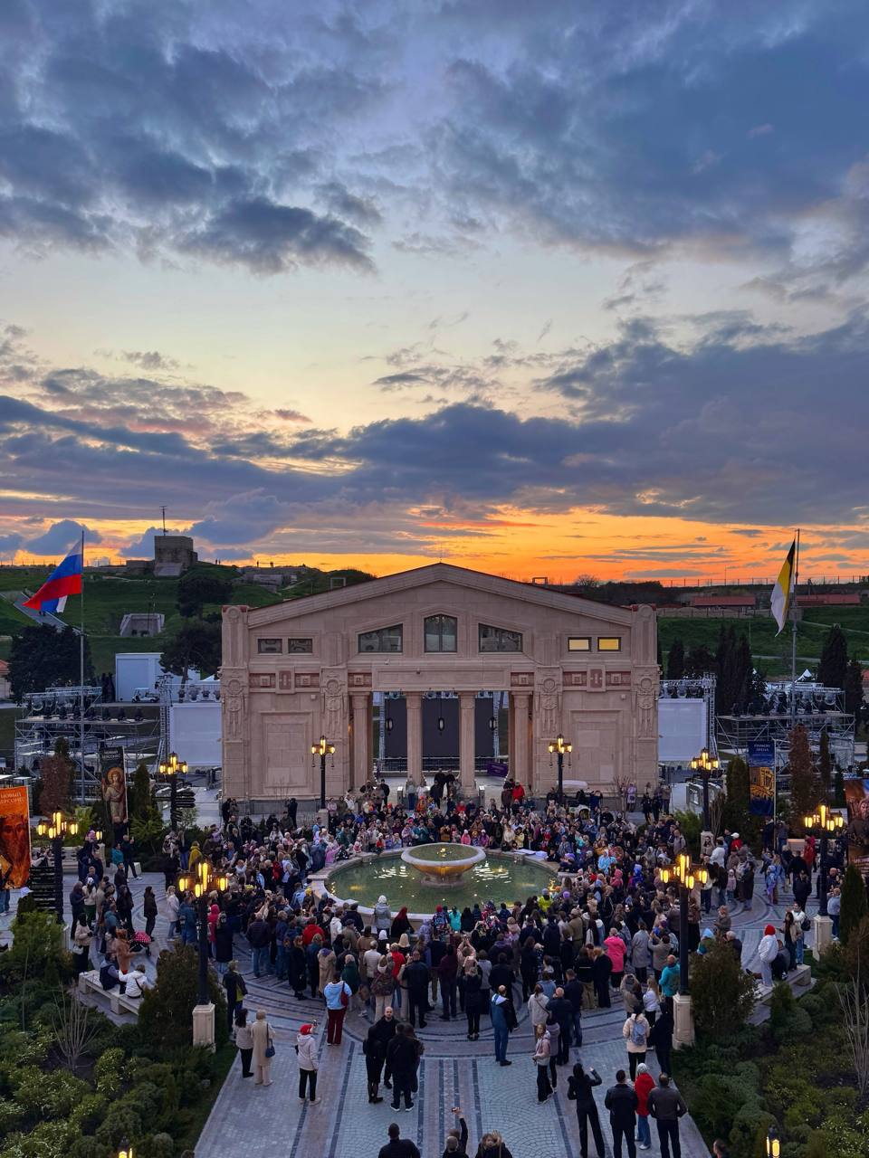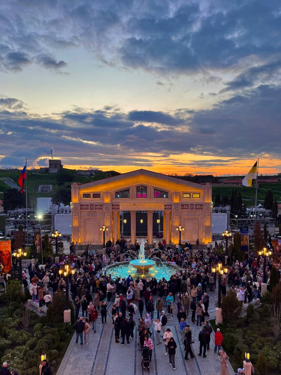 Пасхальные гуляния, открытие фонтанов и праздничная подсветка зданий.А было очень красивенько.